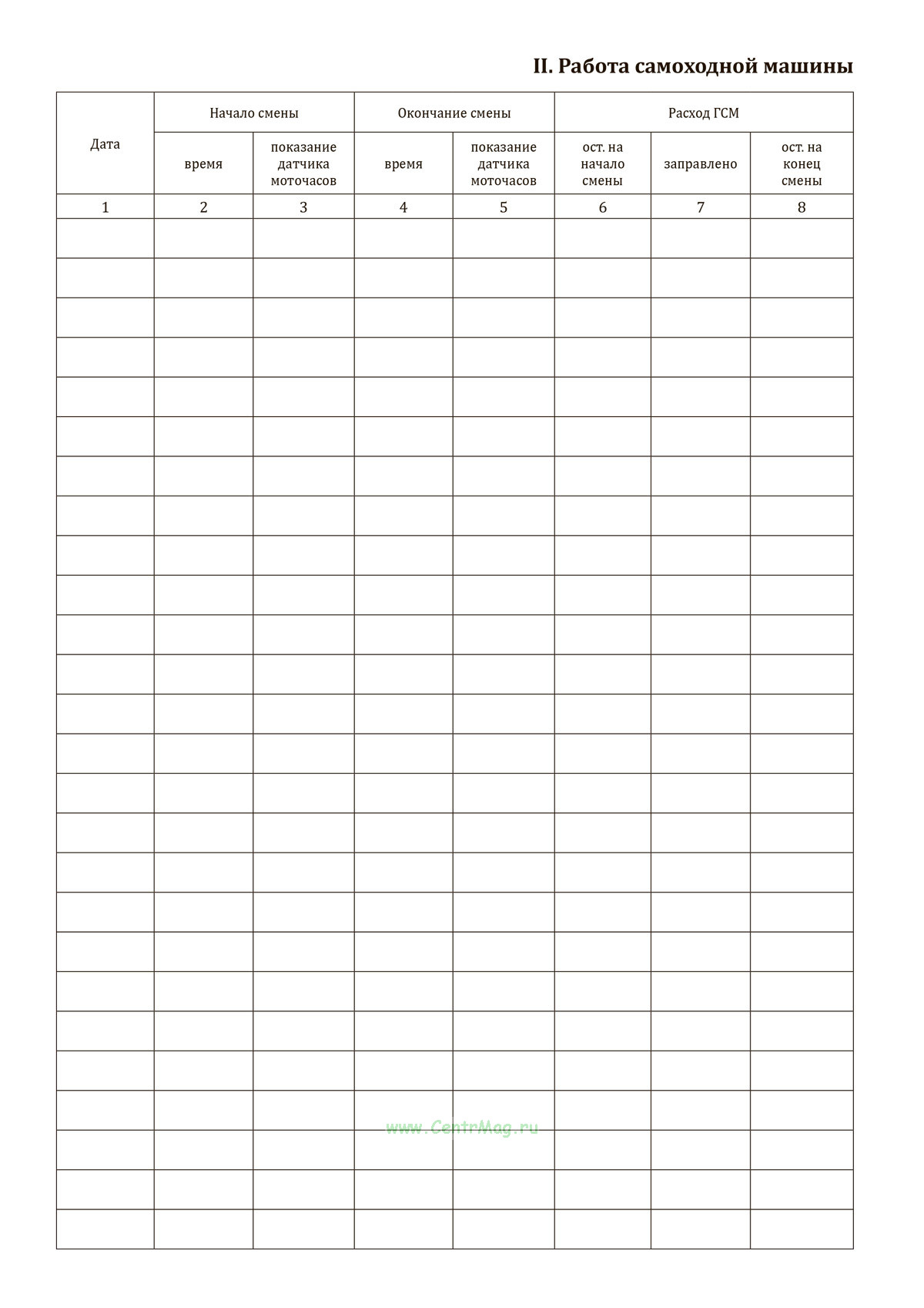 Бортовой журнал самоходной машины имеет графы: