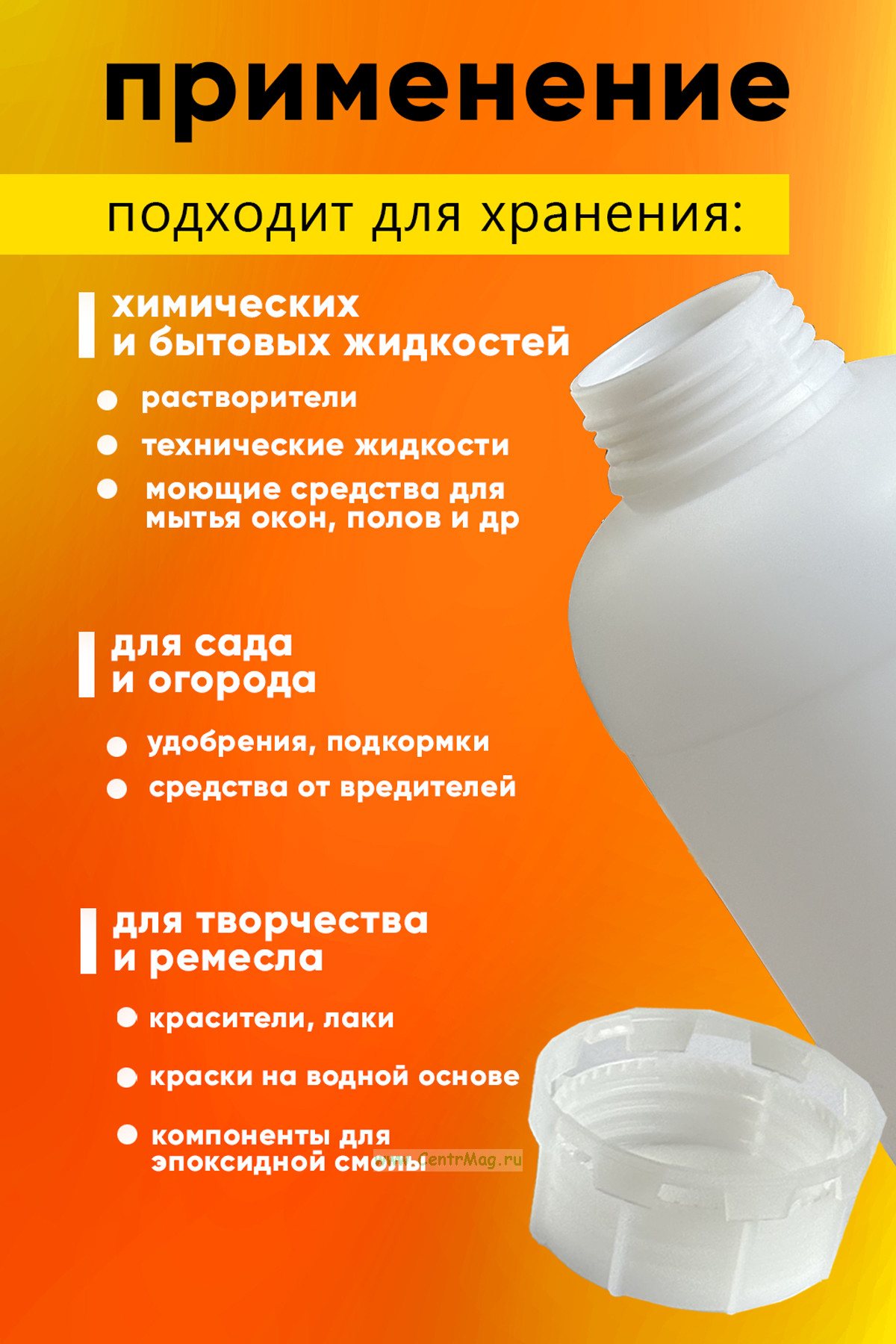 Горлышко: широкое (3,5 см), с навинчивающейся крышкой
