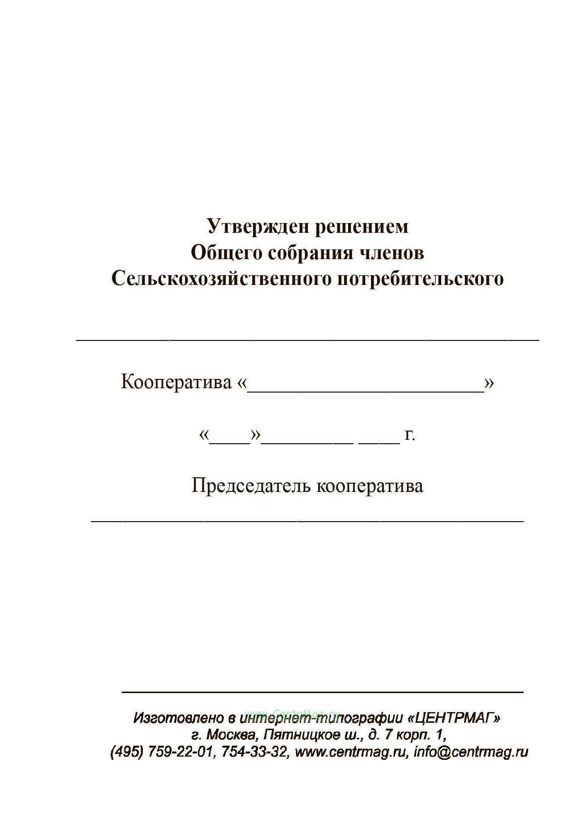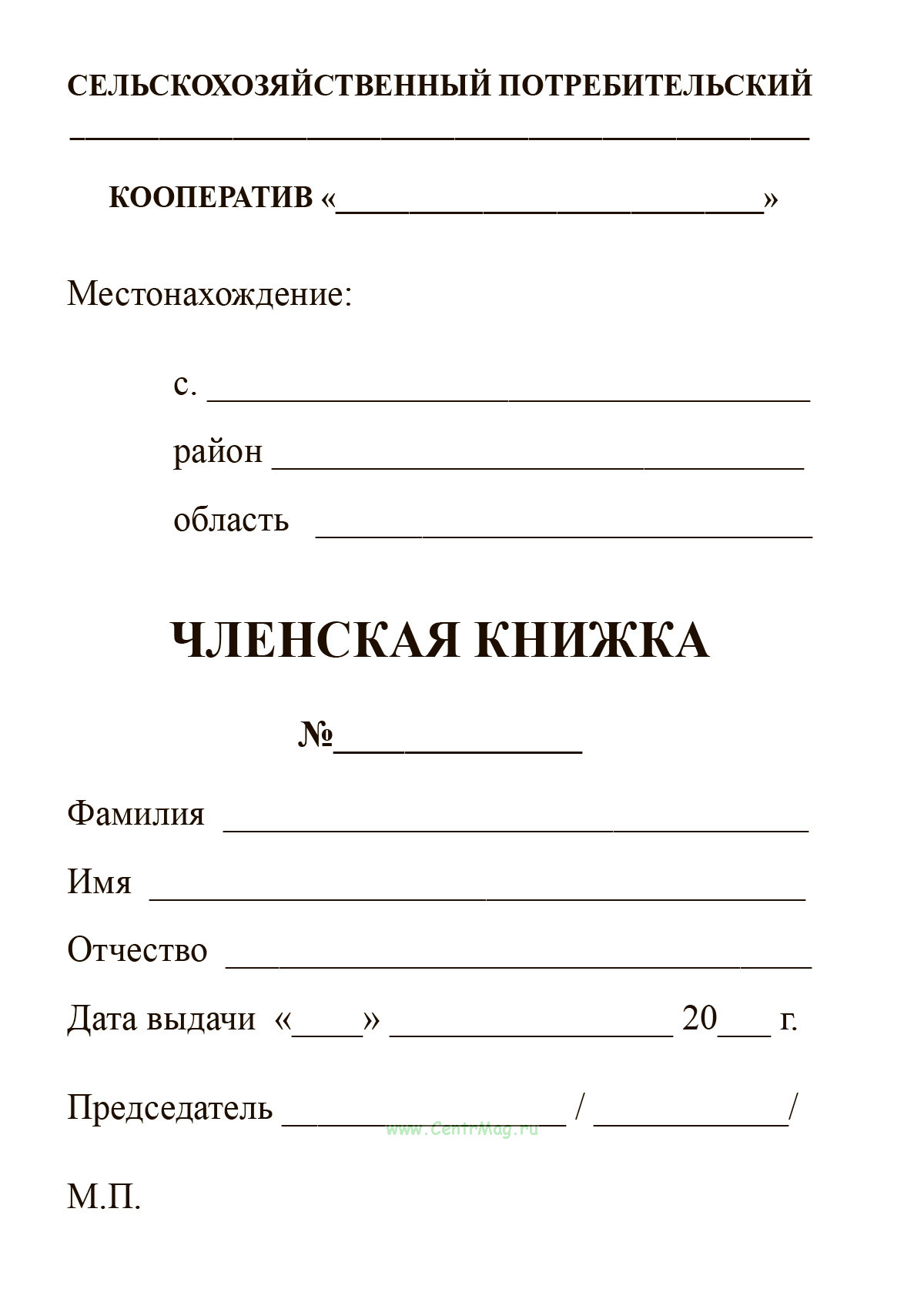 Вы можете купить стандартную членскую книжку сельскохозяйственного потребительского кооперативаили воспользоваться мастером создания членской книжки во вкладке "Настройка".