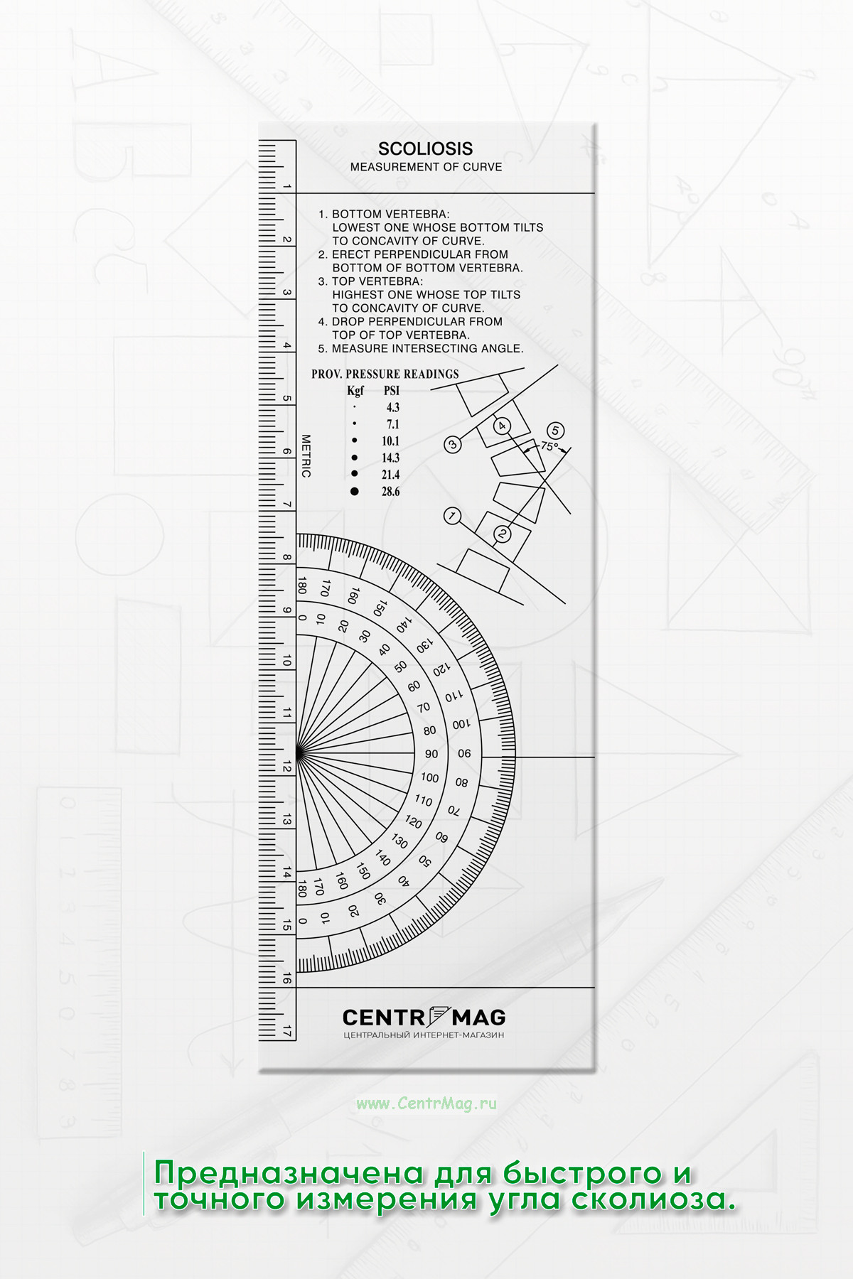 Линейка для измерения сколиоза предназначена для быстрого и точного измерения угла сколиоза. Простая в использовании, благодаря инструкции на линейке.