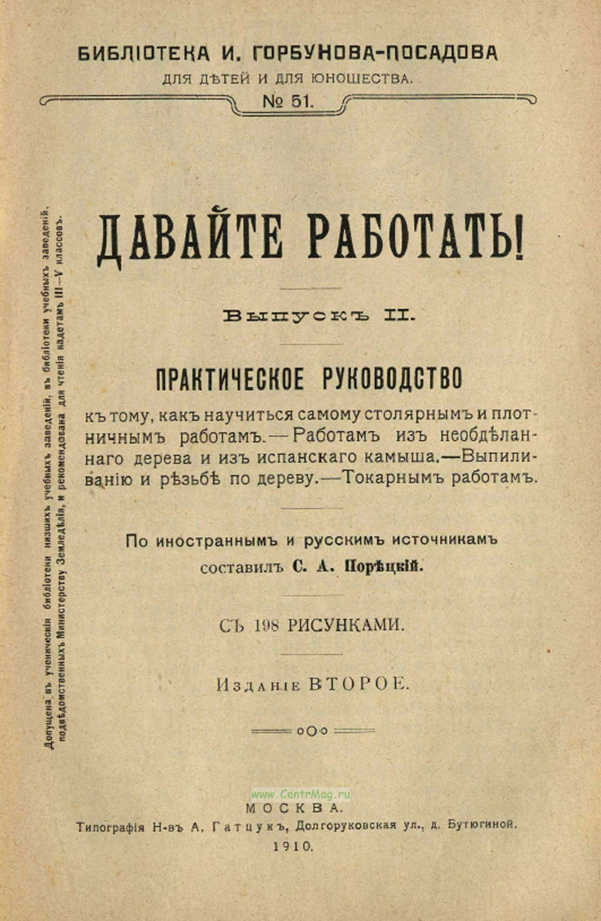 Практическое руководство к тому, как научиться самому столярным и плотничным работам, работам из необделанного дерева и из испанского камыша, выпиливанию и резьбе по дереву, токарным работам. С 198 рисунками. Составлено по иностранным и русским источникам.