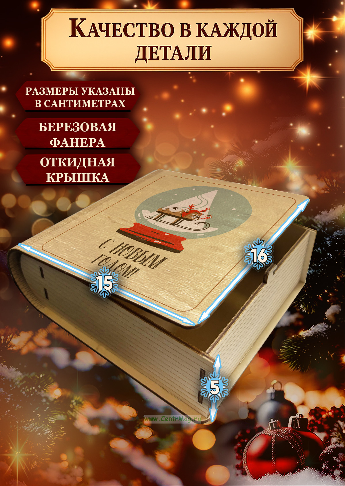 Оригинальная шкатулка-книга из дерева - стильное и практичное решение для хранения или упаковки подарков. Изготовлена из натуральной берёзовой фанеры, изделие выглядит аккуратно и современно. Крышка открывается как обложка книги, а прочные стенки обеспечивают надежность при хранении.