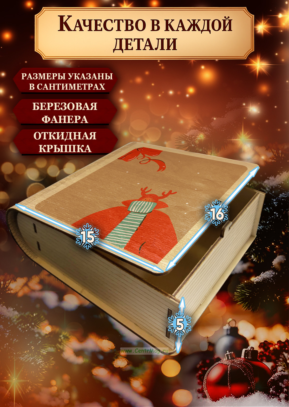 Оригинальная шкатулка-книга из дерева - стильное и практичное решение для хранения или упаковки подарков. Изготовлена из натуральной берёзовой фанеры, изделие выглядит аккуратно и современно. Крышка открывается как обложка книги, а прочные стенки обеспечивают надежность при хранении.