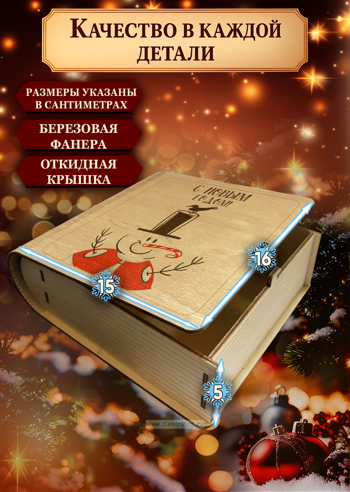 Оригинальная шкатулка-книга из дерева - стильное и практичное решение для хранения или упаковки подарков. Изготовлена из натуральной берёзовой фанеры, изделие выглядит аккуратно и современно. Крышка открывается как обложка книги, а прочные стенки обеспечивают надежность при хранении.