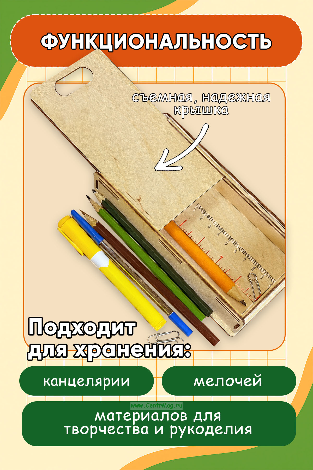 Стильный и удобный деревянный пенал - это идеальное решение для хранения канцелярии дома, в школе, в офисе или в путешествии.