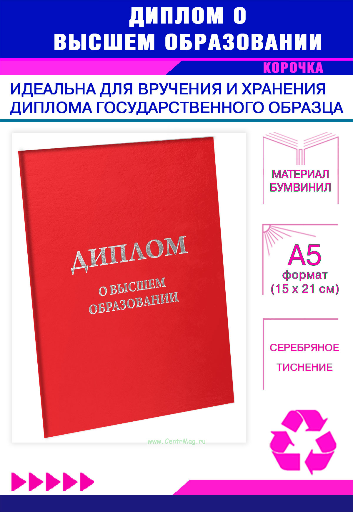 Обложка для диплома о высшем образовании, бумвинил, красный, серебряное тиснение продается только как чистый незаполненный бланк, без печатей и подписей соответствует 149-ФЗ от 27.07.2006