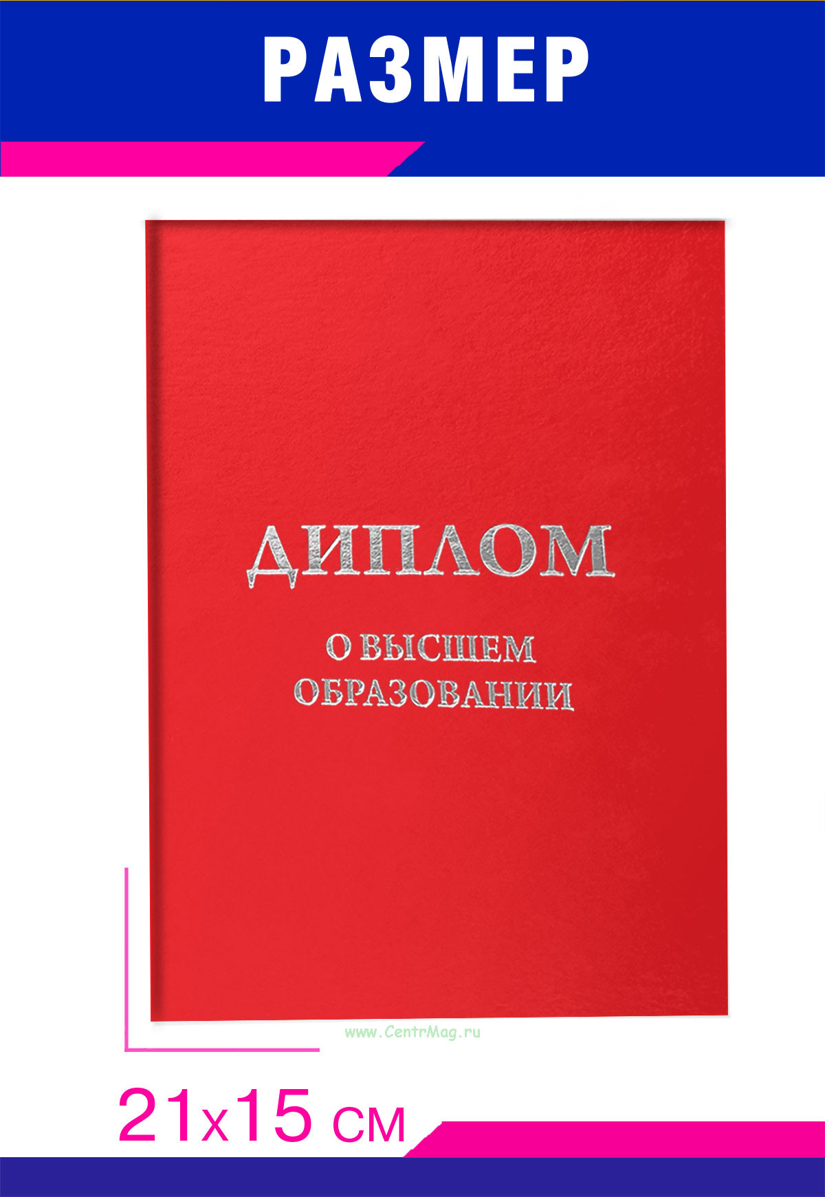 Обложка для диплома о высшем образовании, бумвинил, красный, серебряное тиснение