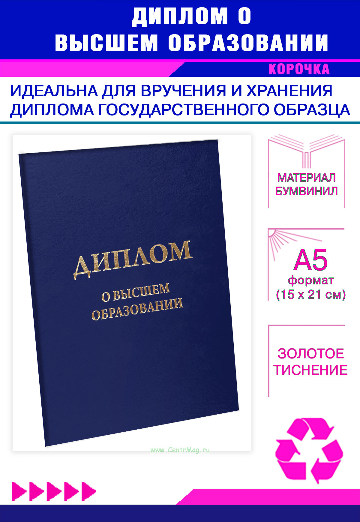 Обложка для диплома о высшем образовании, бумвинил, синий, золотое тиснение продается только как чистый незаполненный бланк, без печатей и подписей соответствует 149-ФЗ от 27.07.2006