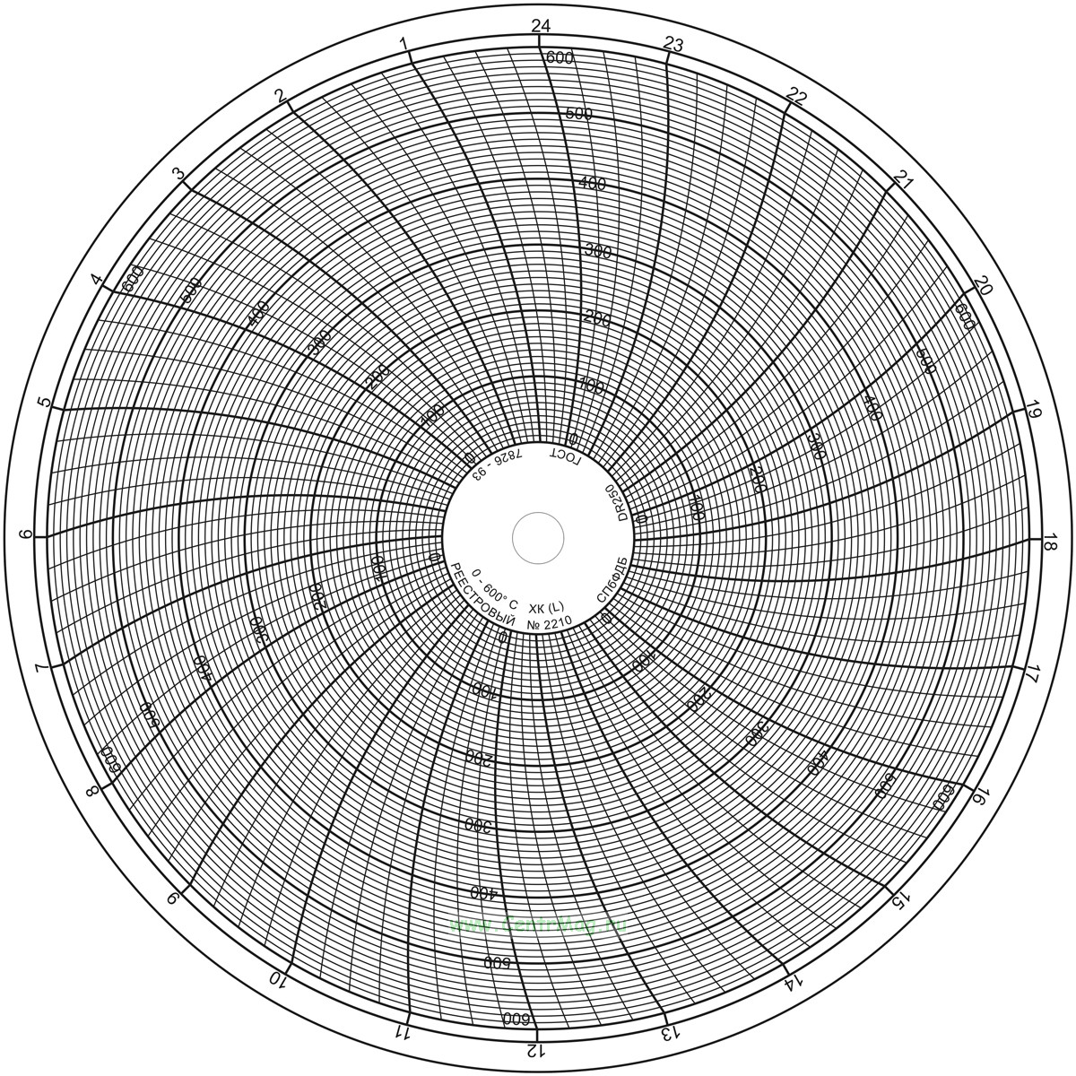 Промышленный диаграммный диск для регистрации температурных показателей. Используется в самописцах с потенциометрами КСП, КСД для построения графика изменения температуры во времени.