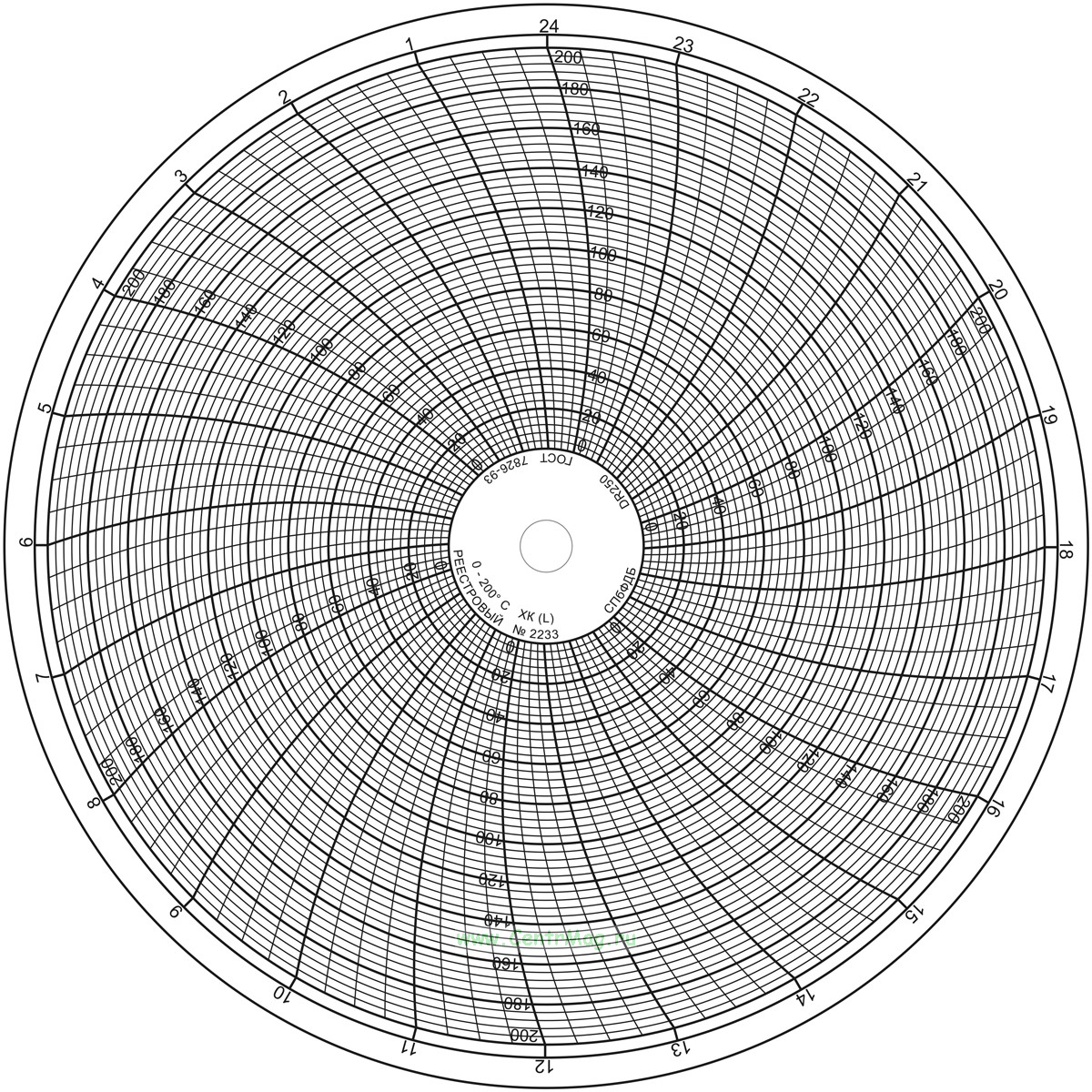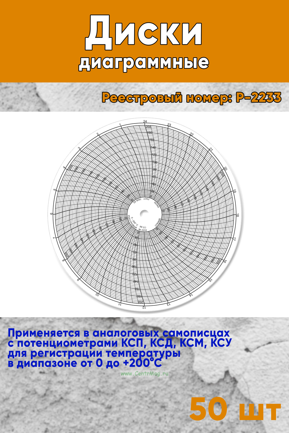 Диск №2233 применяется в аналоговых самописцах с потенциометрами КСП, КСД, КСМ, КСУ для регистрации температуры в диапазоне от 0 до +200оC. Предназначен для суточной визуальной фиксации показаний в системах контроля и автоматизации.