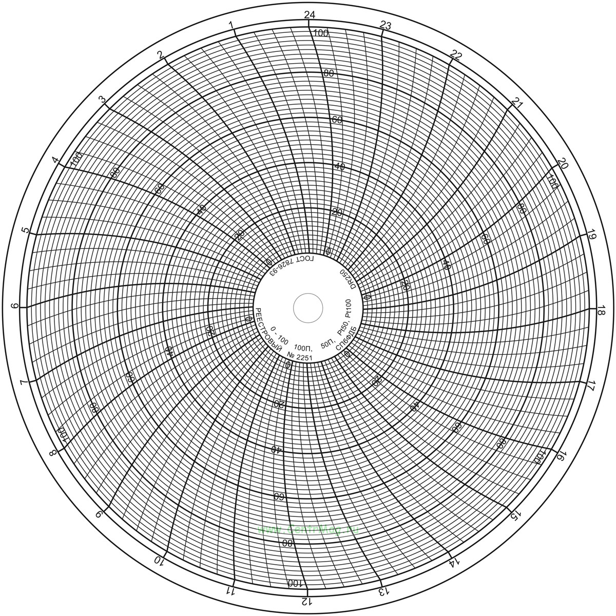 Диаграммный круг №2251 используется для аналоговой записи температуры в диапазоне до 100?оC. Подходит для применения в самописцах с потенциометрами КСП, КСД при контроле и регистрации температурных режимов на производстве и в лабораториях.