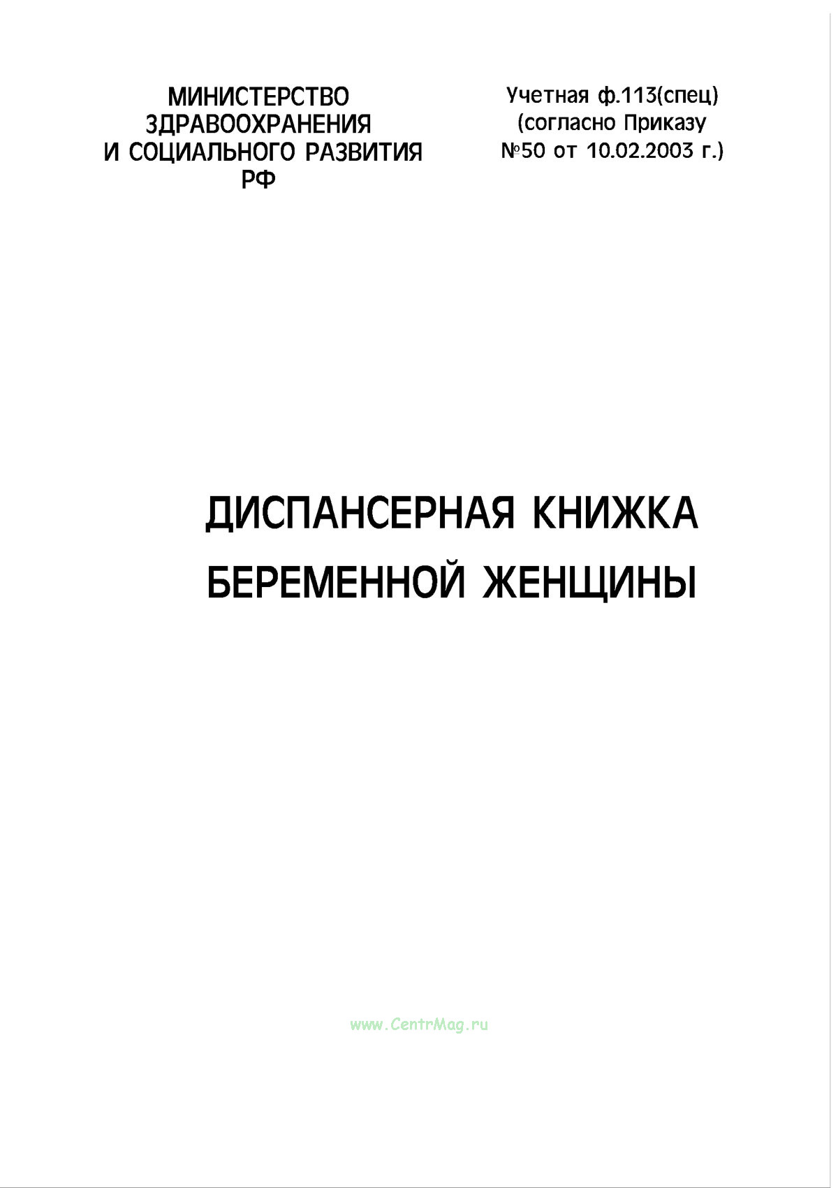 Диспансерная книжка беременной женщины (форма № 113)