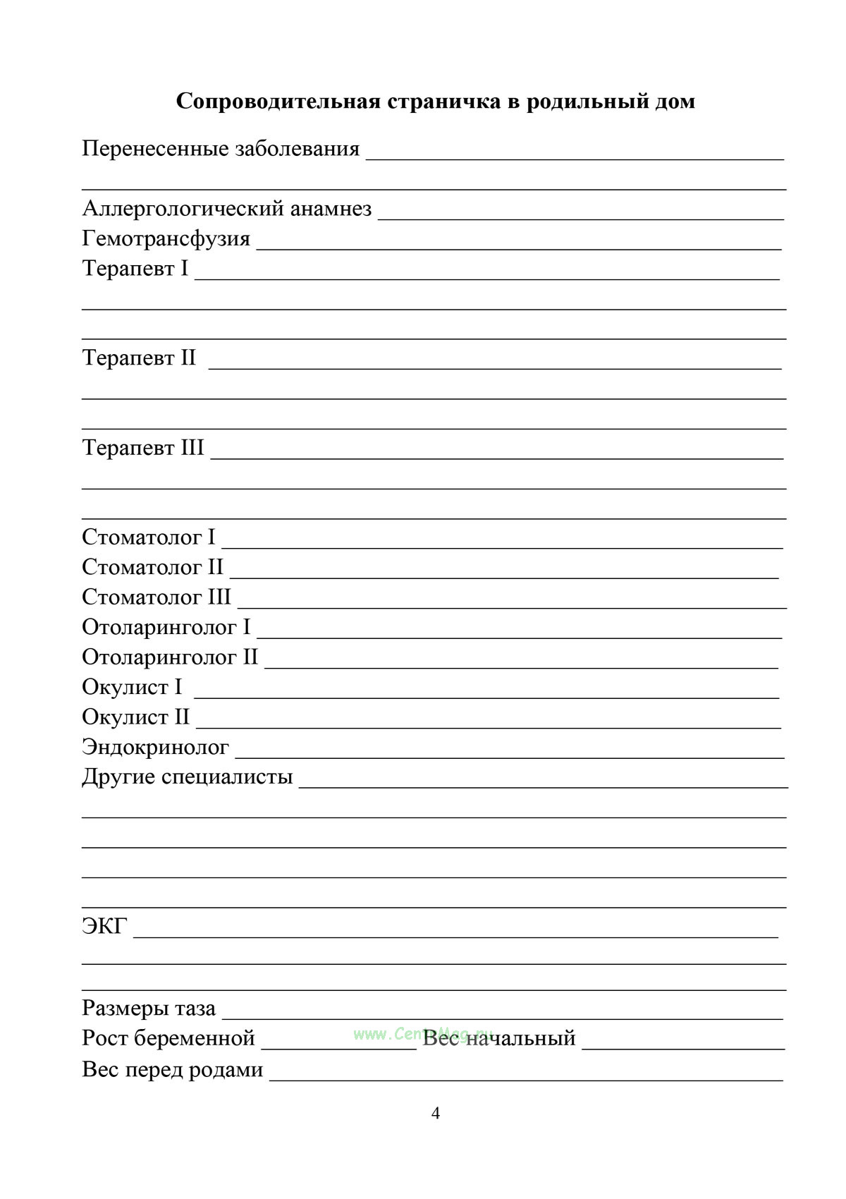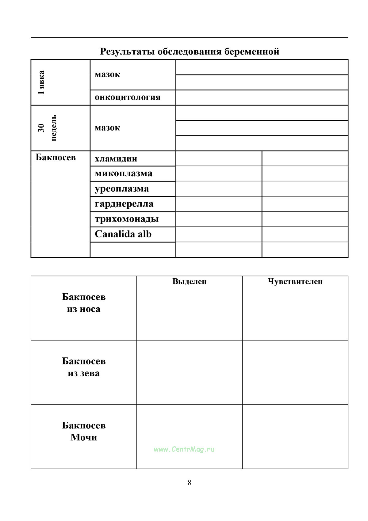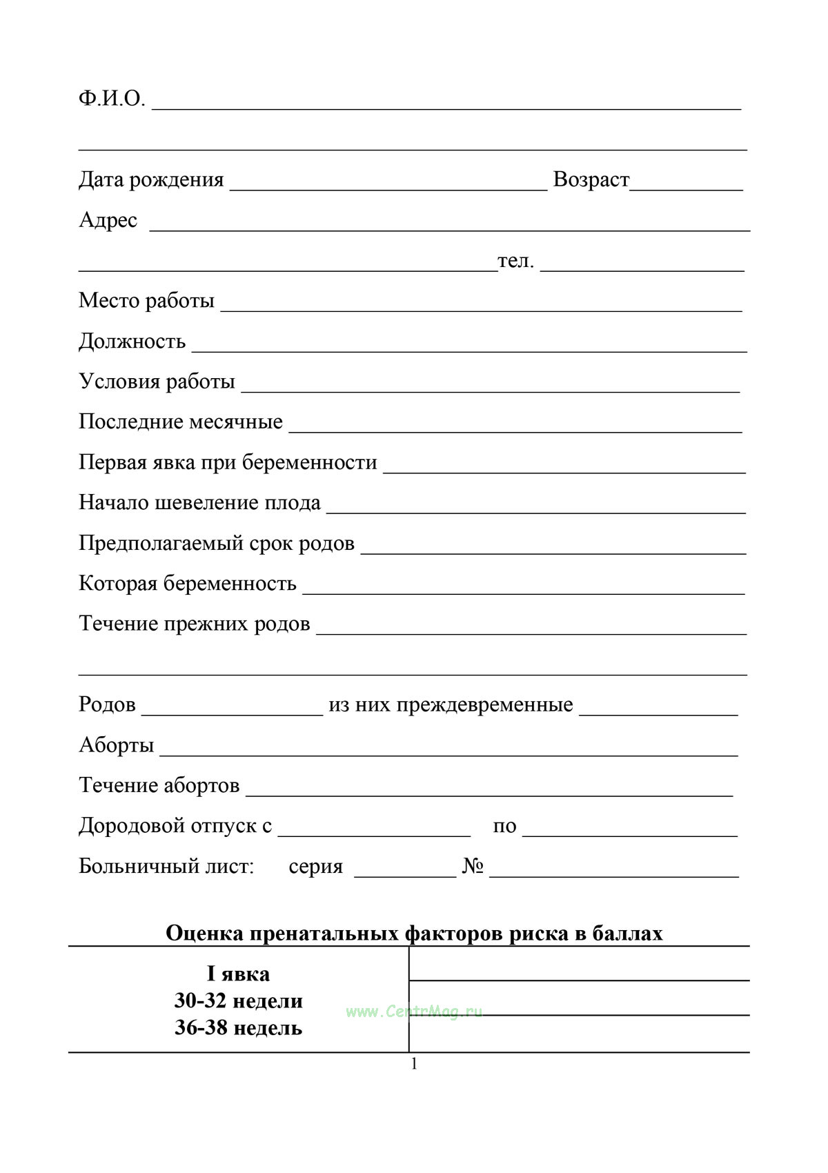Диспансерная книжка беременной женщины (форма № 113) - учетный документ для динамического наблюдения за беременной, в котором фиксируются паспортные данные, анамнез, пренатальная оценка факторов риска, результаты осмотров специалистов и лабораторно-инструментальных исследований.