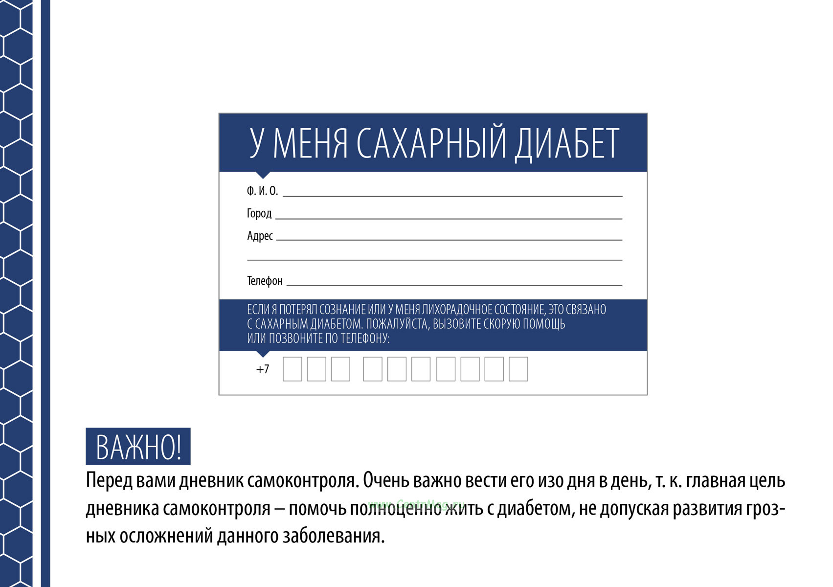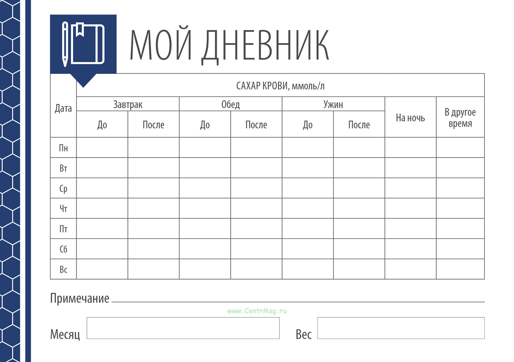 Дневник самоконтроля при сахарном диабете
