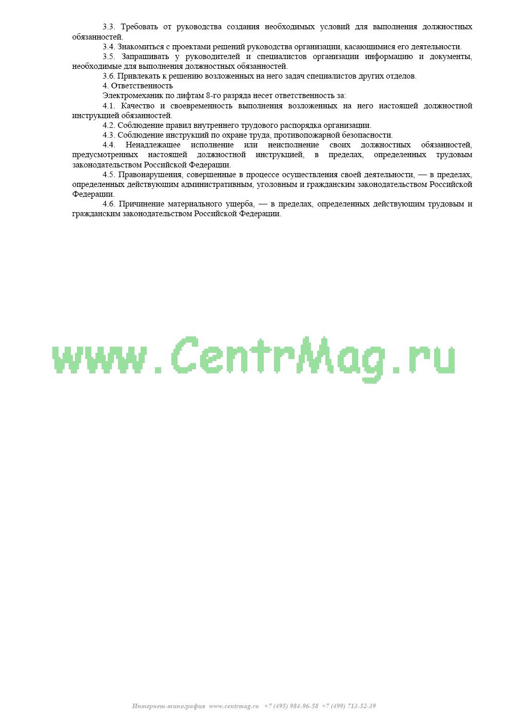 Образец и пример заполнения должностной инструкции электромеханика по лифтам 8-го разряда