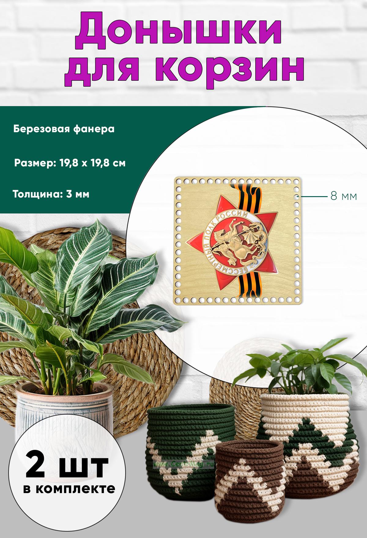 Заготовка сделана из шлифованной березовой фанеры высшего сорта толщиной 3 мм. Такие основы станут отличным каркасом для вашего изделия. Подходят для плетения из шнура, толстых и тонких трикотажных нитей или джута. Также вы можете расписать донышки по своему вкусу. В комплект входит 2 заготовки одинакового размера. Диаметр отверстий для пряжи 8 мм.