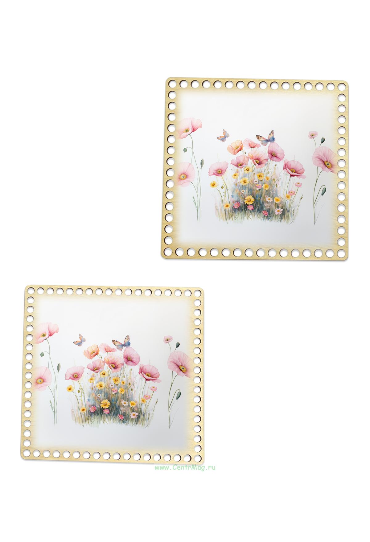 Донышки для вязания, заготовки для рукоделия, дно корзин, 19,8 х 19,8 см, квадрат, 8 мм, маки