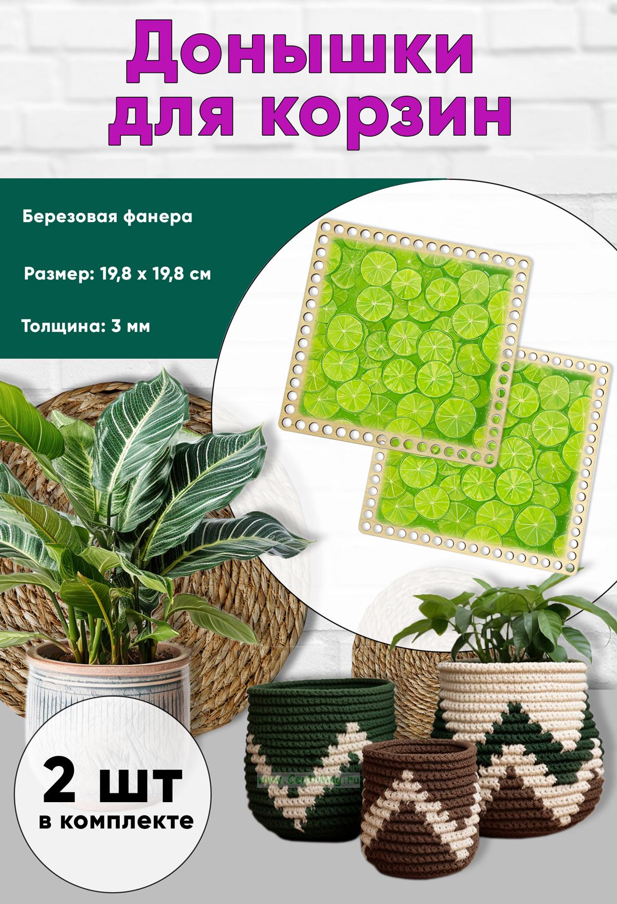 Донышки для вязания, заготовки для рукоделия, дно корзин, 19,8 х 19,8 см, квадрат, лайм