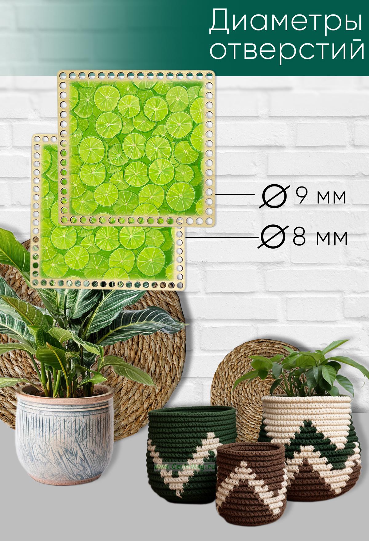 Донышки для вязания, заготовки для рукоделия, дно корзин, 14,8 х 14,8 см, квадрат, лайм (90 руб.)