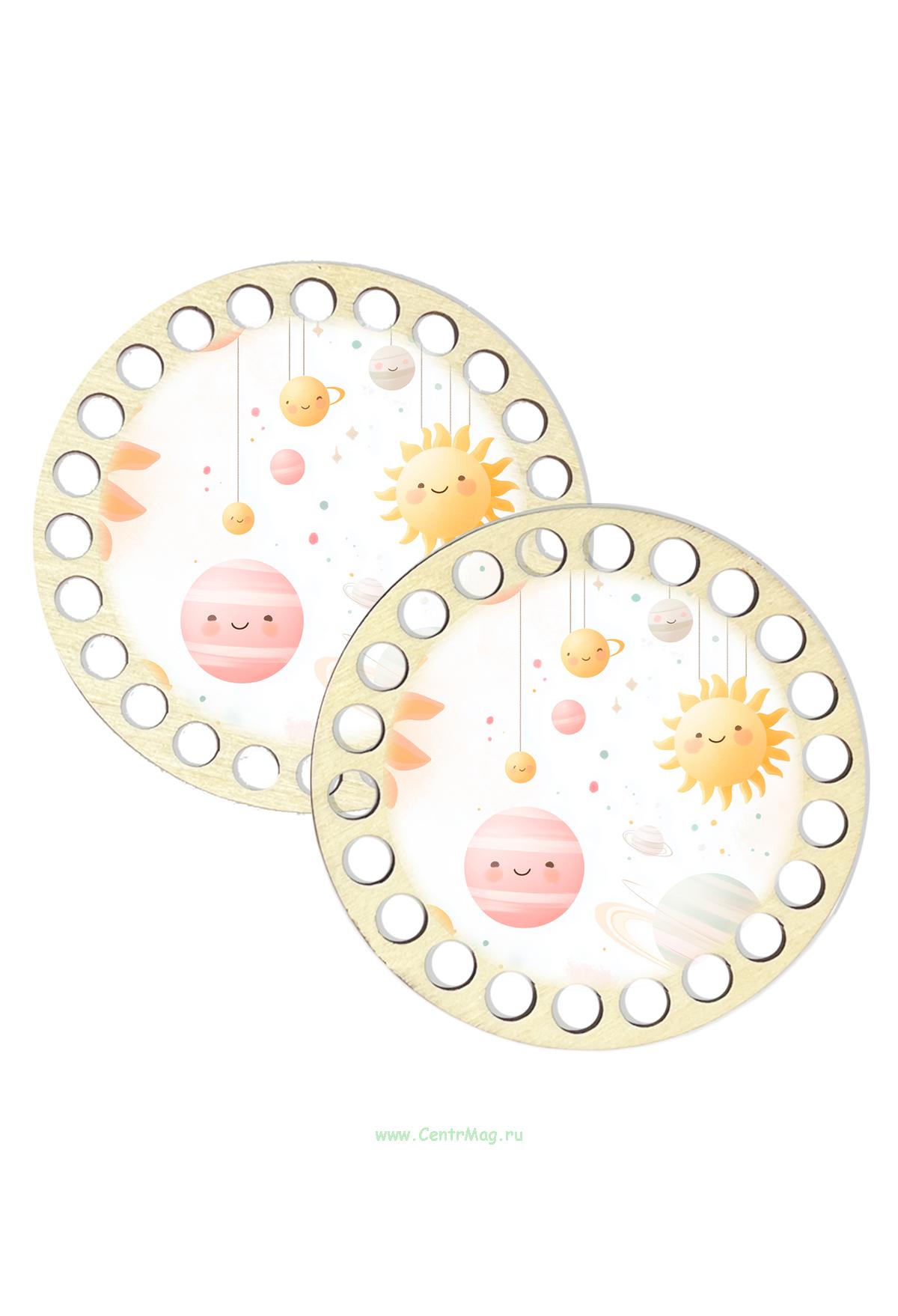 Заготовка сделана из шлифованной березовой фанеры высшего сорта толщиной 3 мм. Такие основы станут отличным каркасом для вашего изделия. Подходят для плетения из шнура, толстых и тонких трикотажных нитей или джута. Также вы можете расписать донышки по своему вкусу. В комплект входит 2 заготовки одинакового размера. Диаметр отверстий для пряжи 9 мм.