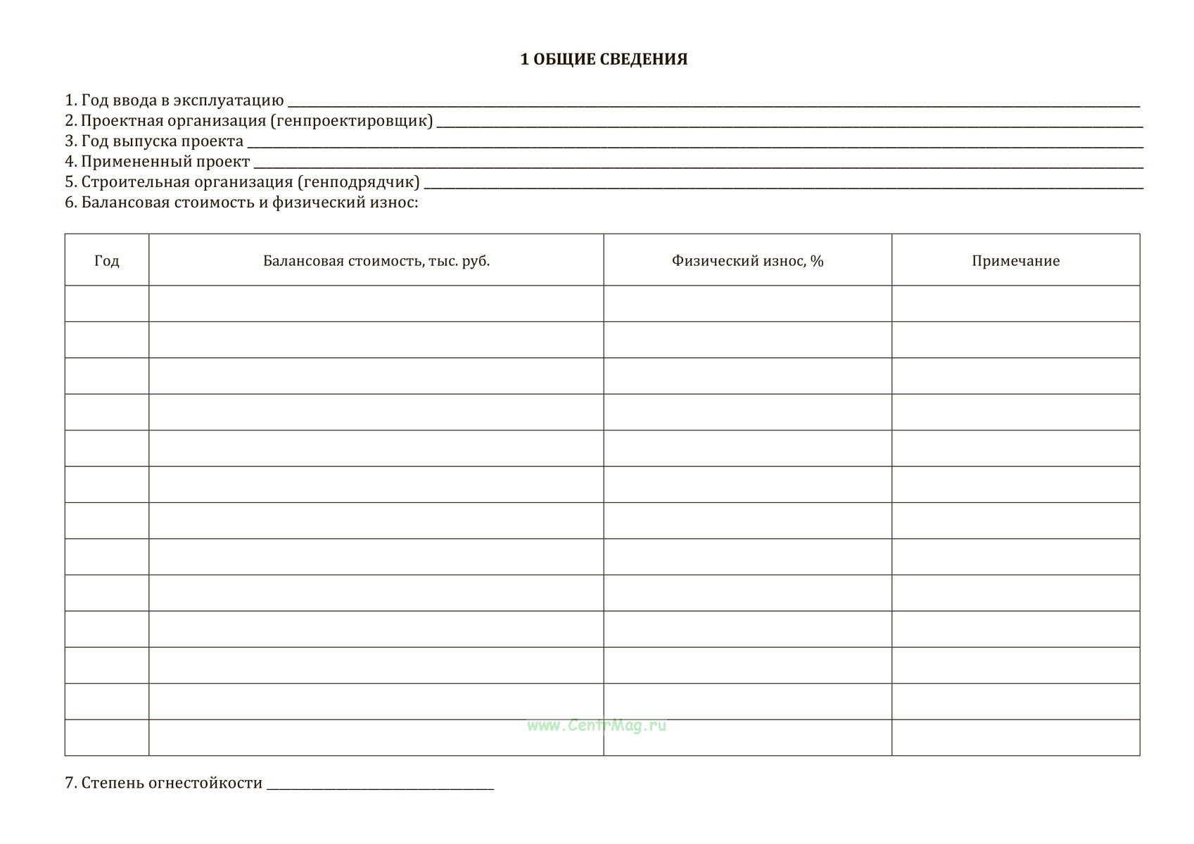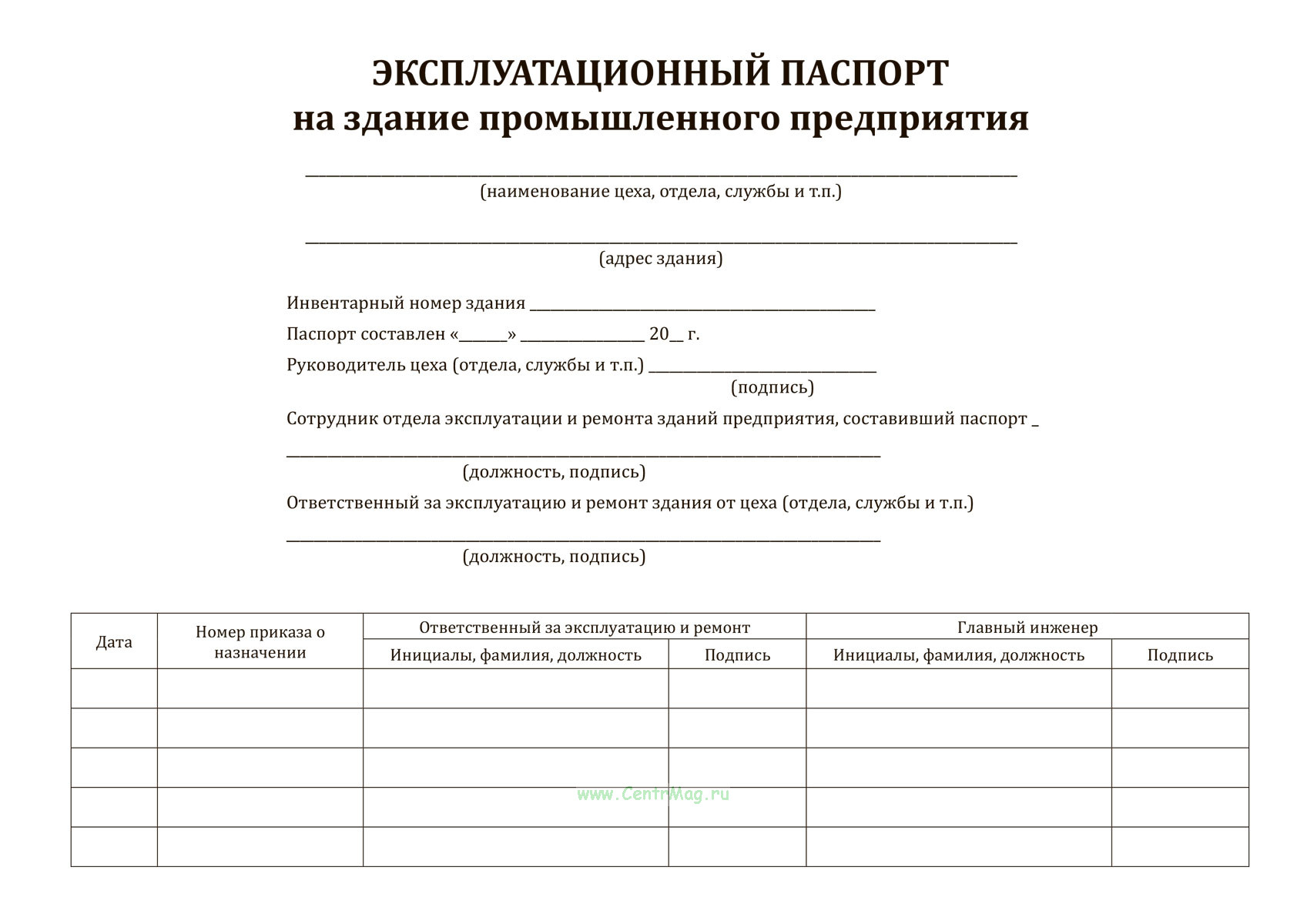 Эксплуатационный паспорт на здание промышленного предприятия имеет графы: