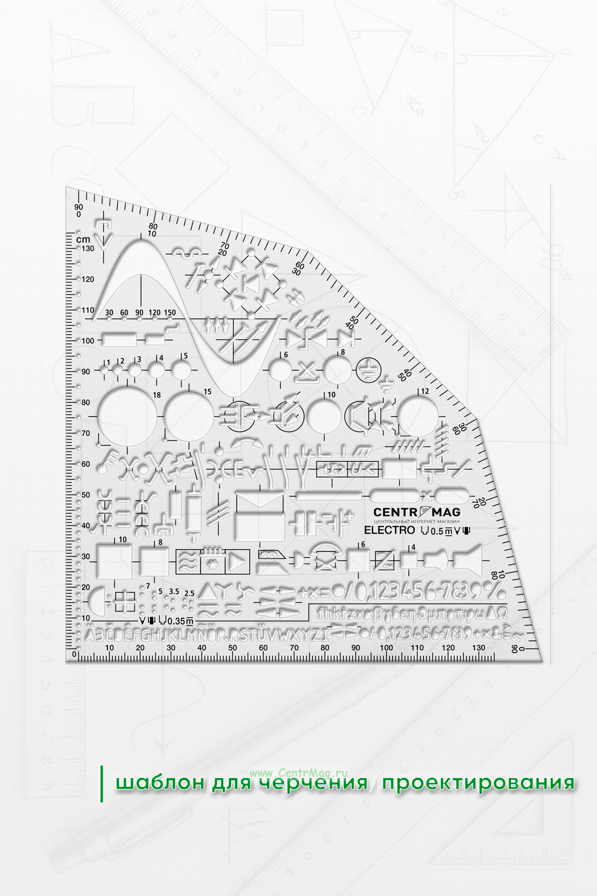 Шаблон для черчения/проектирования изготовлен из прозрачного пластика.