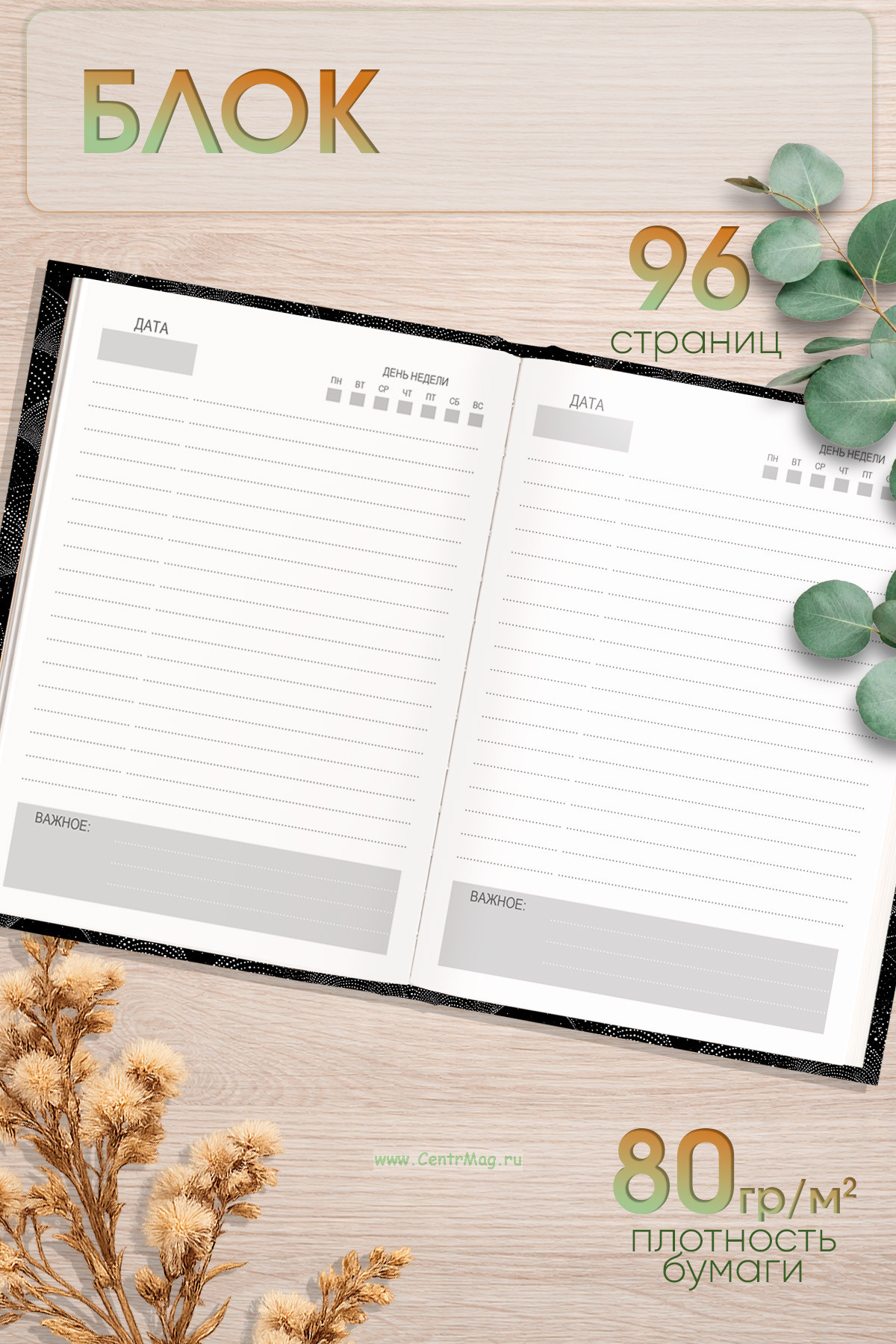 Данный ежедневник поможет спланировать время и ничего не забыть. В блоке имеются все необходимые графы для систематизации планов на день и будущее. Благодаря стандартному формату ежедневник удобно использовать как в офисе, так и на выездных деловых встречах. Твердая обложка имеет глянцевую ламинацию, что значительно продлевает срок службы изделия.