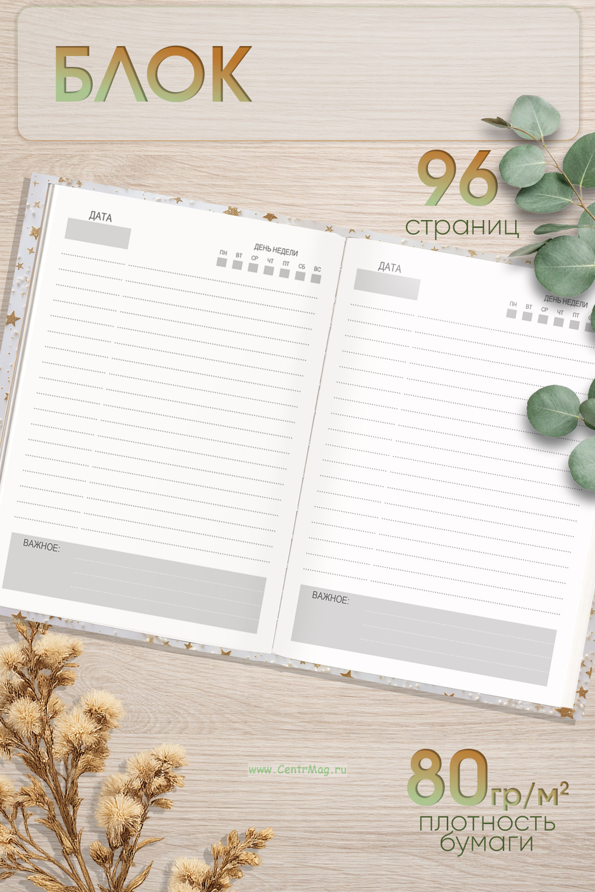 Данный ежедневник поможет спланировать время и ничего не забыть. В блоке имеются все необходимые графы для систематизации планов на день и будущее. Благодаря стандартному формату ежедневник удобно использовать как в офисе, так и на выездных деловых встречах. Твердая обложка имеет глянцевую ламинацию, что значительно продлевает срок службы изделия.