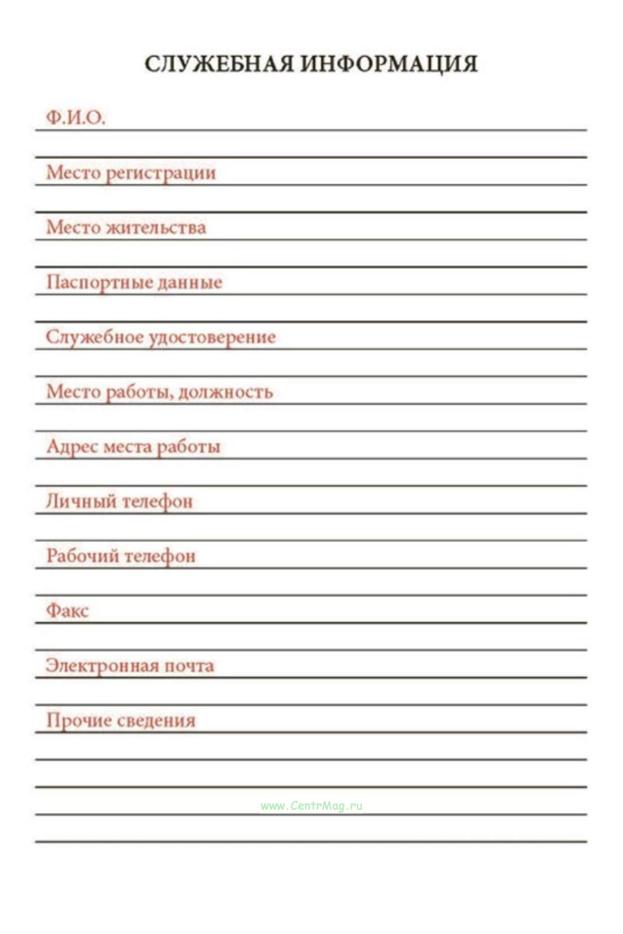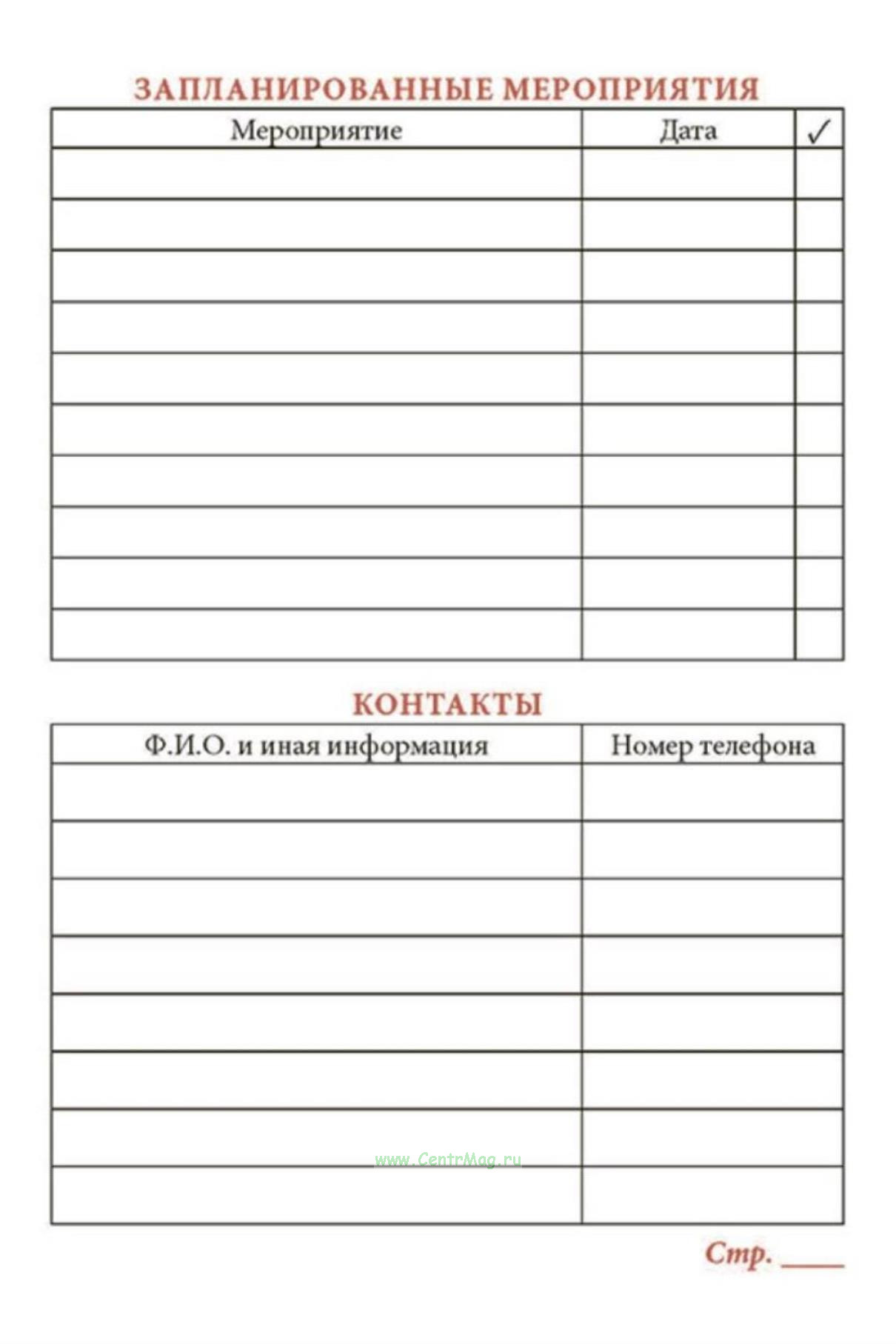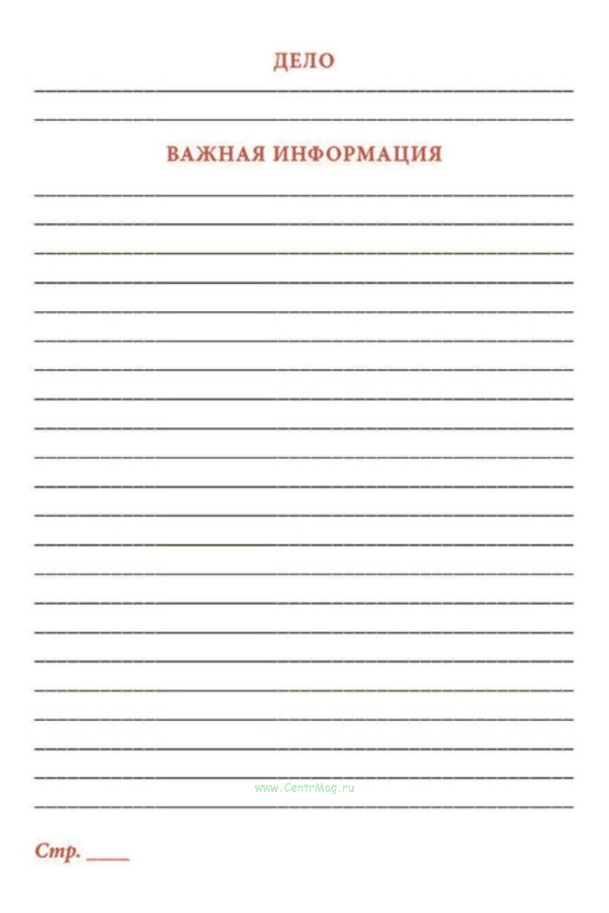 В блокноте удобно фиксировать служебную информацию, информацию о контактах, важных мероприятиях на неделю, месяц и год, cодержит блок контактов сотрудников иных подразделений и учреждений.