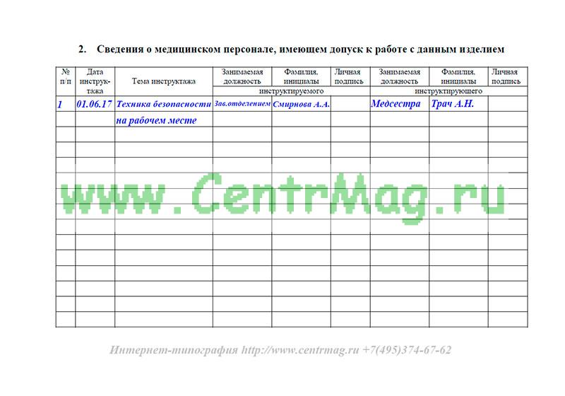 2. Сведения о медицинском персонале, имеющем допуск к работе с данным изделием