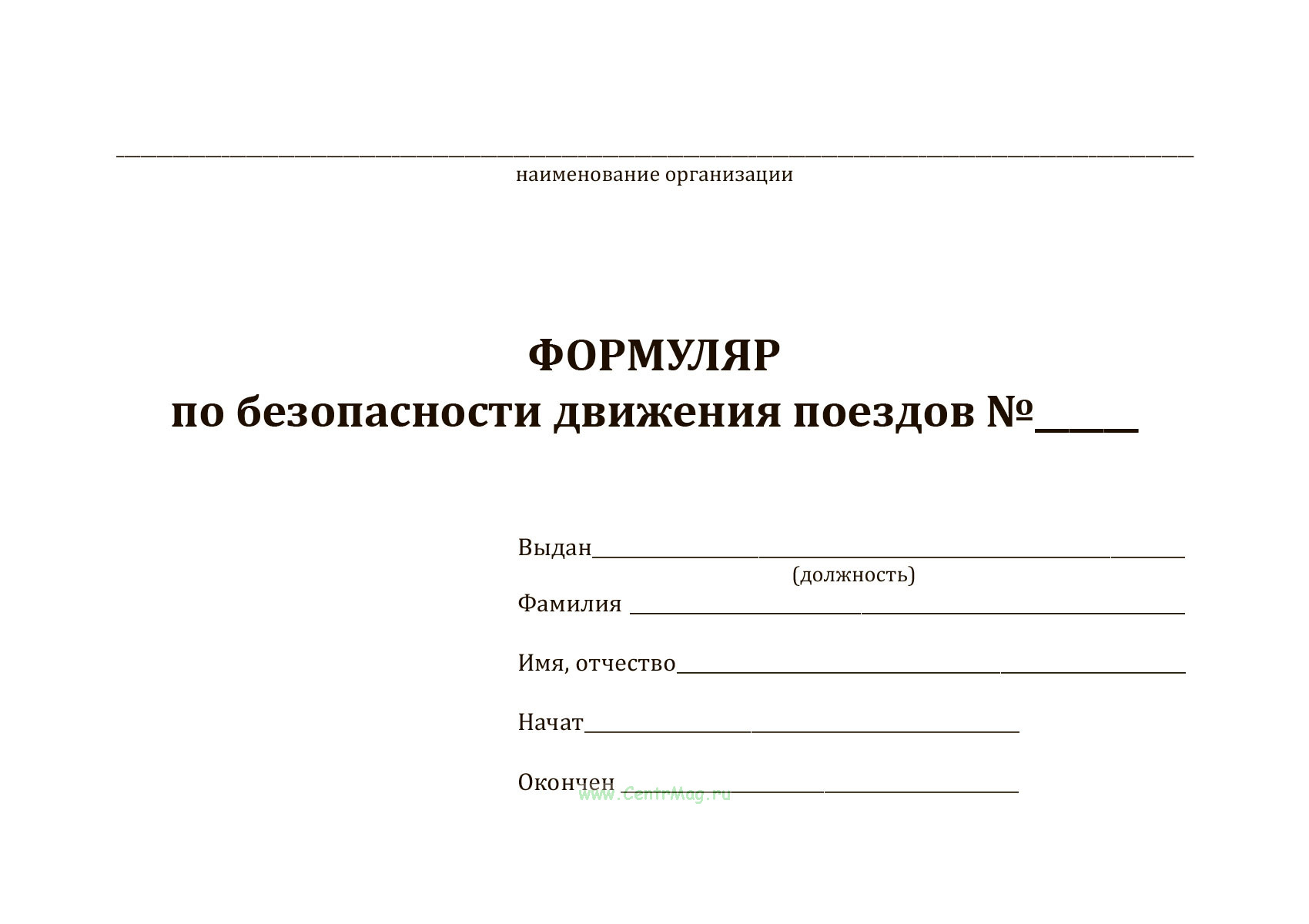Формуляр по безопасности движения поездов