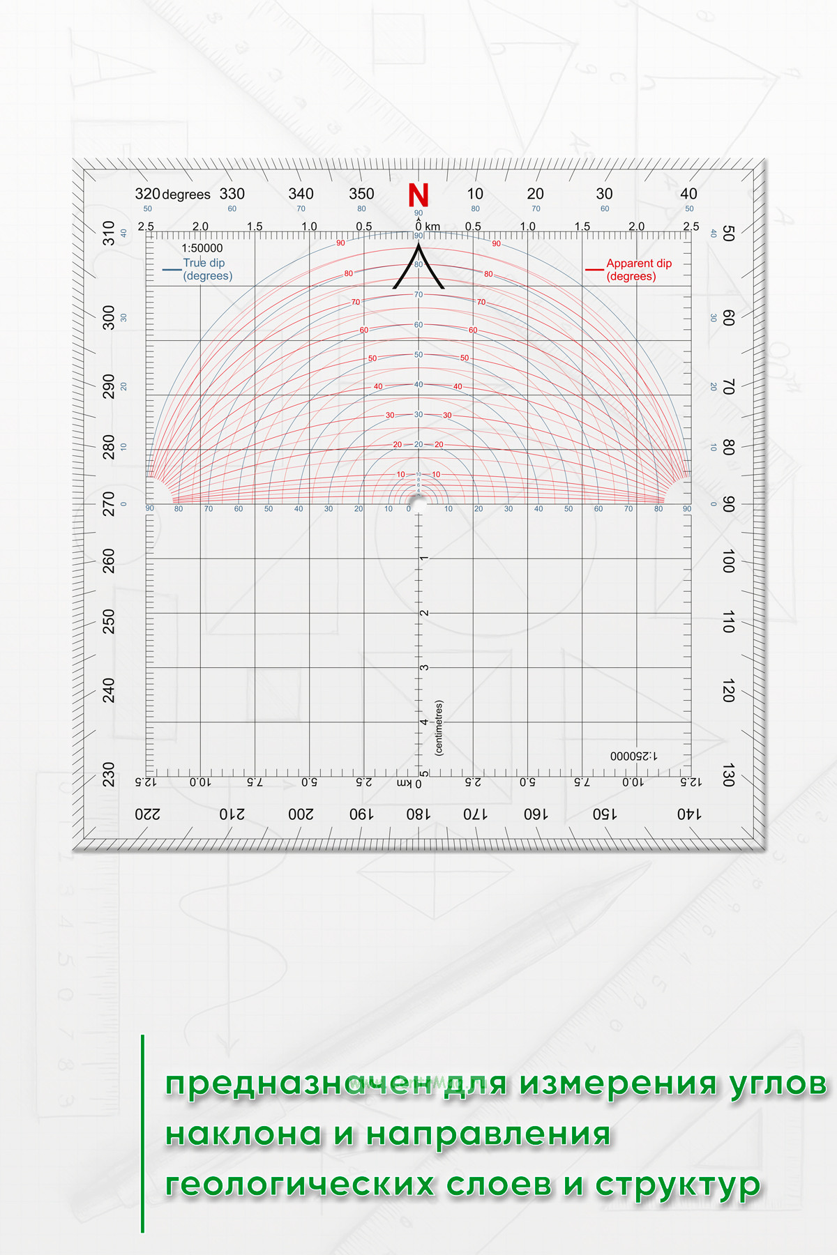 Геологический транспортир Douglas предназначен для измерения углов наклона и направления геологических слоев и структур.