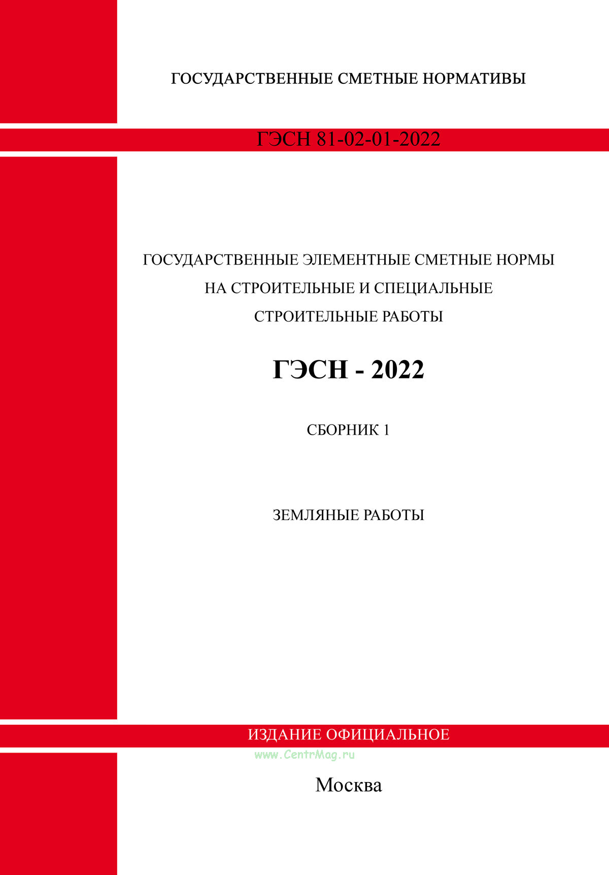 "ГЭСН 81-02-01-2022. Сметные нормы на строительные работы. Сборник 1. Земляные работы" утв. Приказом Минстроя России от 30.12.2021 N 1046/пр