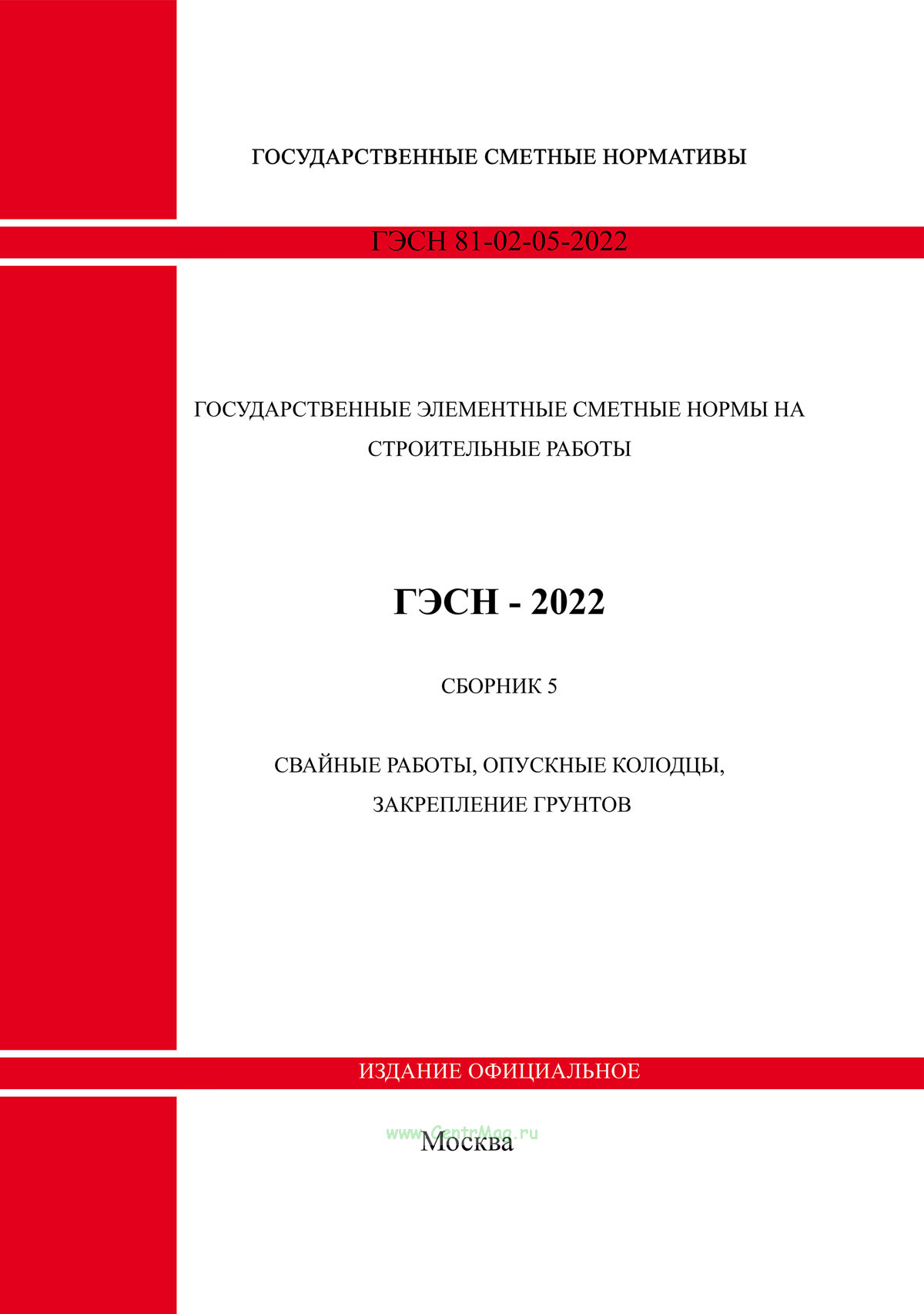 "ГЭСН 81-02-05-2022. Сметные нормы на строительные работы. Сборник 5. Свайные работы, опускные колодцы, закрепление грунтов" утв. Приказом Минстроя России от 30.12.2021 N 1046/пр
