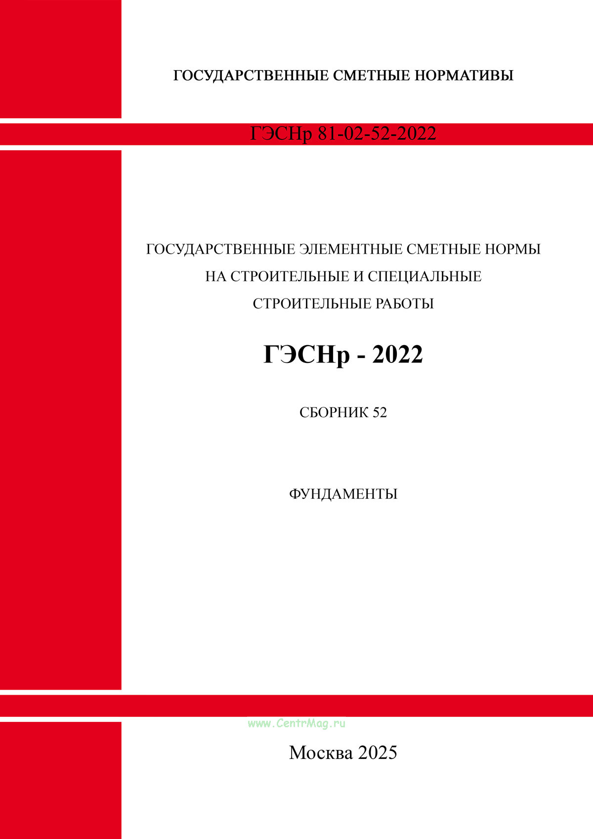 "ГЭСНр 81-02-52-2022 Сборник 52. Фундаменты" утв. Приказом Минстроя России от 30.12.2021 N 1046/пр.