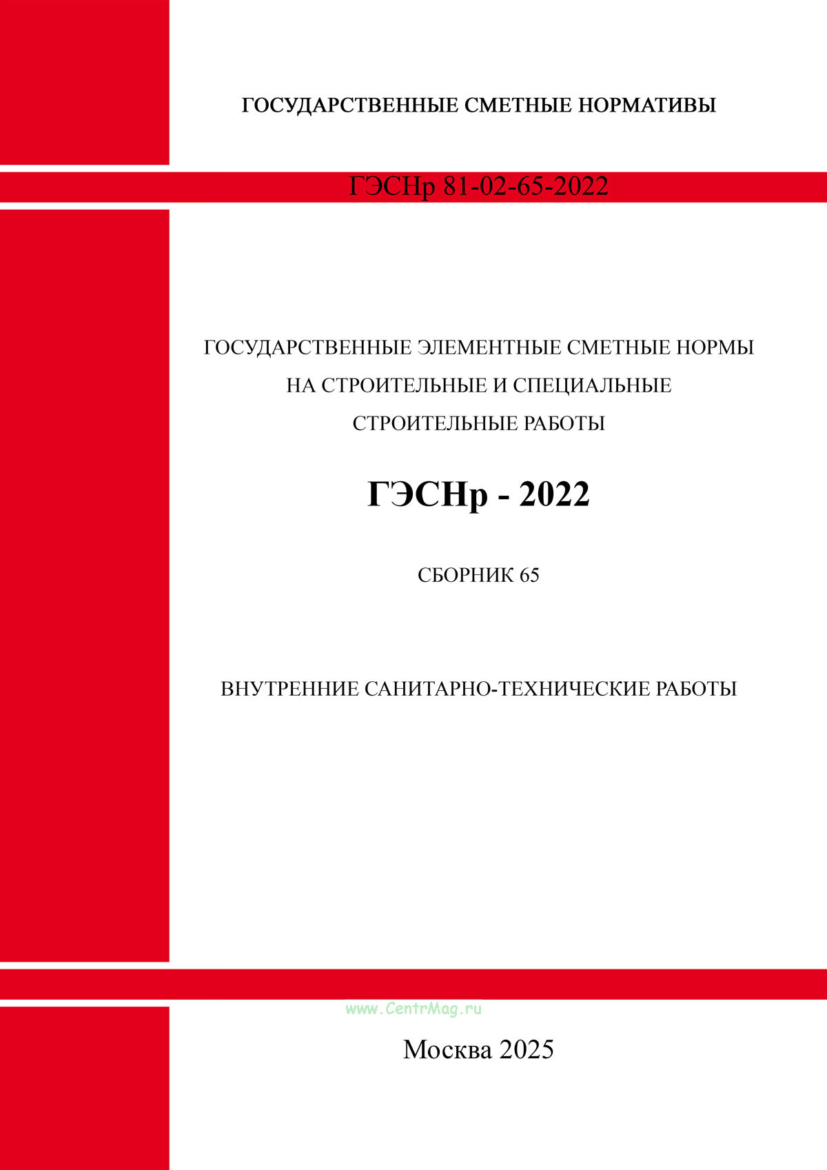 "ГЭСНр 81-02-65-2022 Сборник 65. Внутренние санитарно-технические работы" утв. Приказом Минстроя России от 30.12.2021 N 1046/пр.
