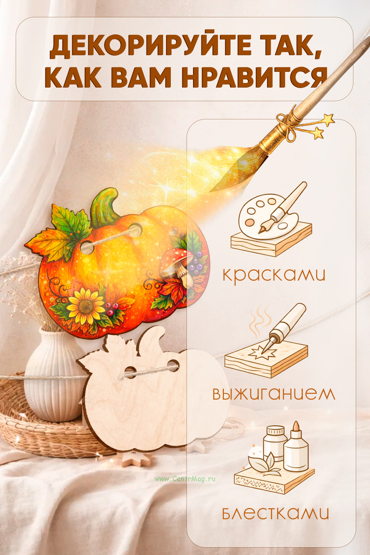 Дополнительно элементы можно декорировать: раскрасить, покрыть блестками или просто лаком, использовать выжигание или другие техники - создавая уникальный дизайн под свое настроение.
