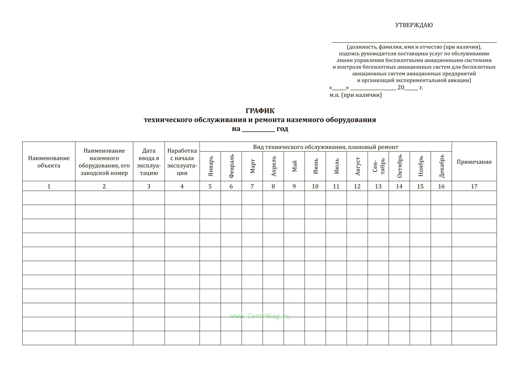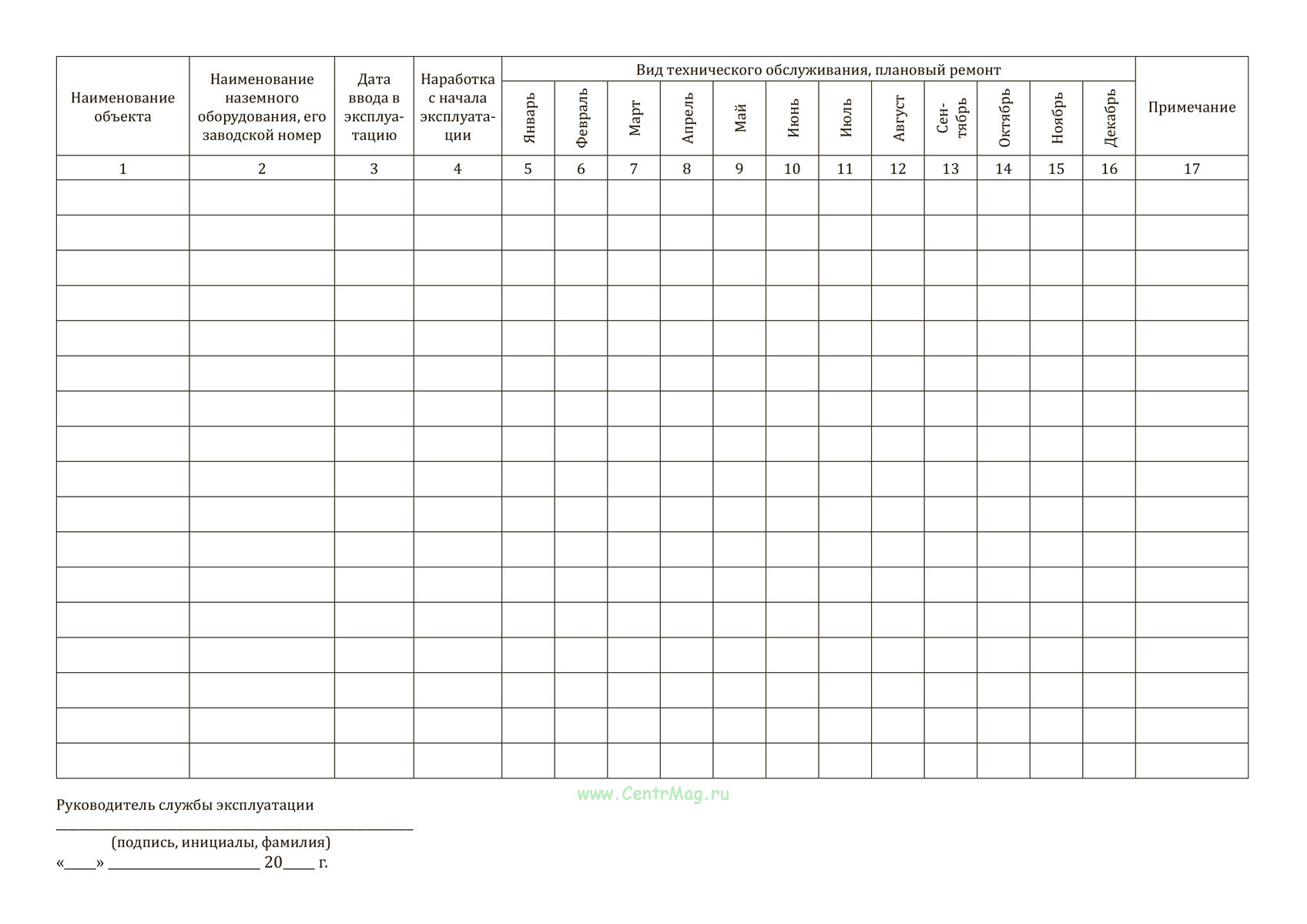 График технического обслуживания и ремонта наземного оборудования продается только как чистый незаполненный бланк, без печатей и подписей соответствует 149-ФЗ от 27.07.2006