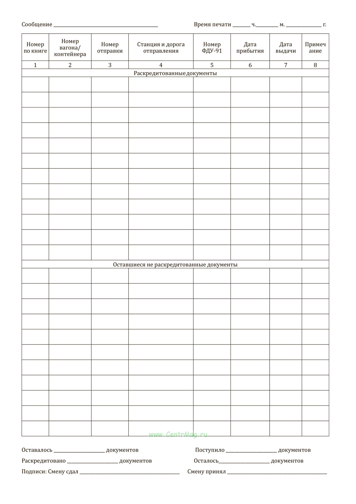 Книга прибытия грузов формы ГУ-42ВЦ предназначена для учета поступления и раскредитования перевозочных документов на прибывшие грузы, контейнеры.
