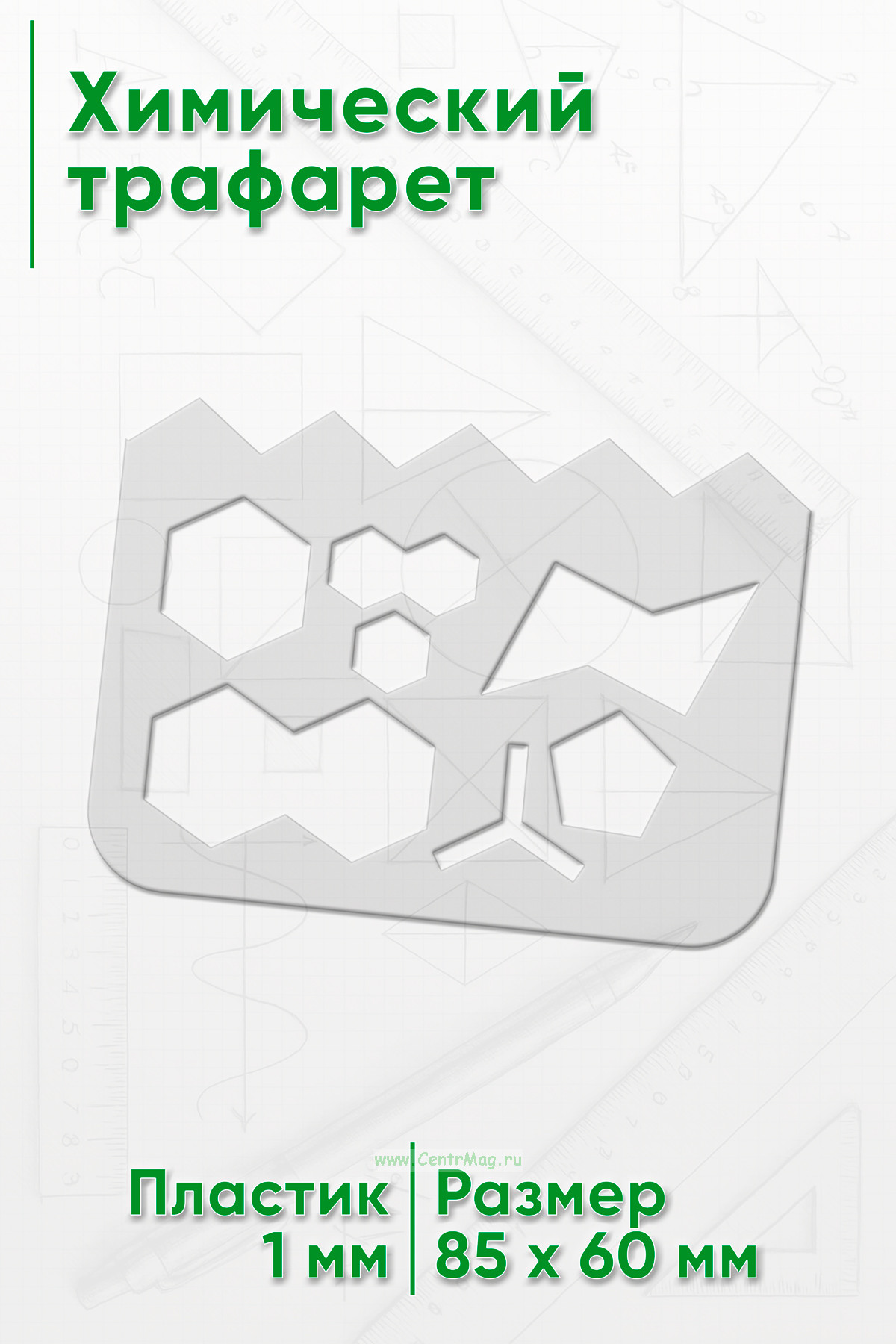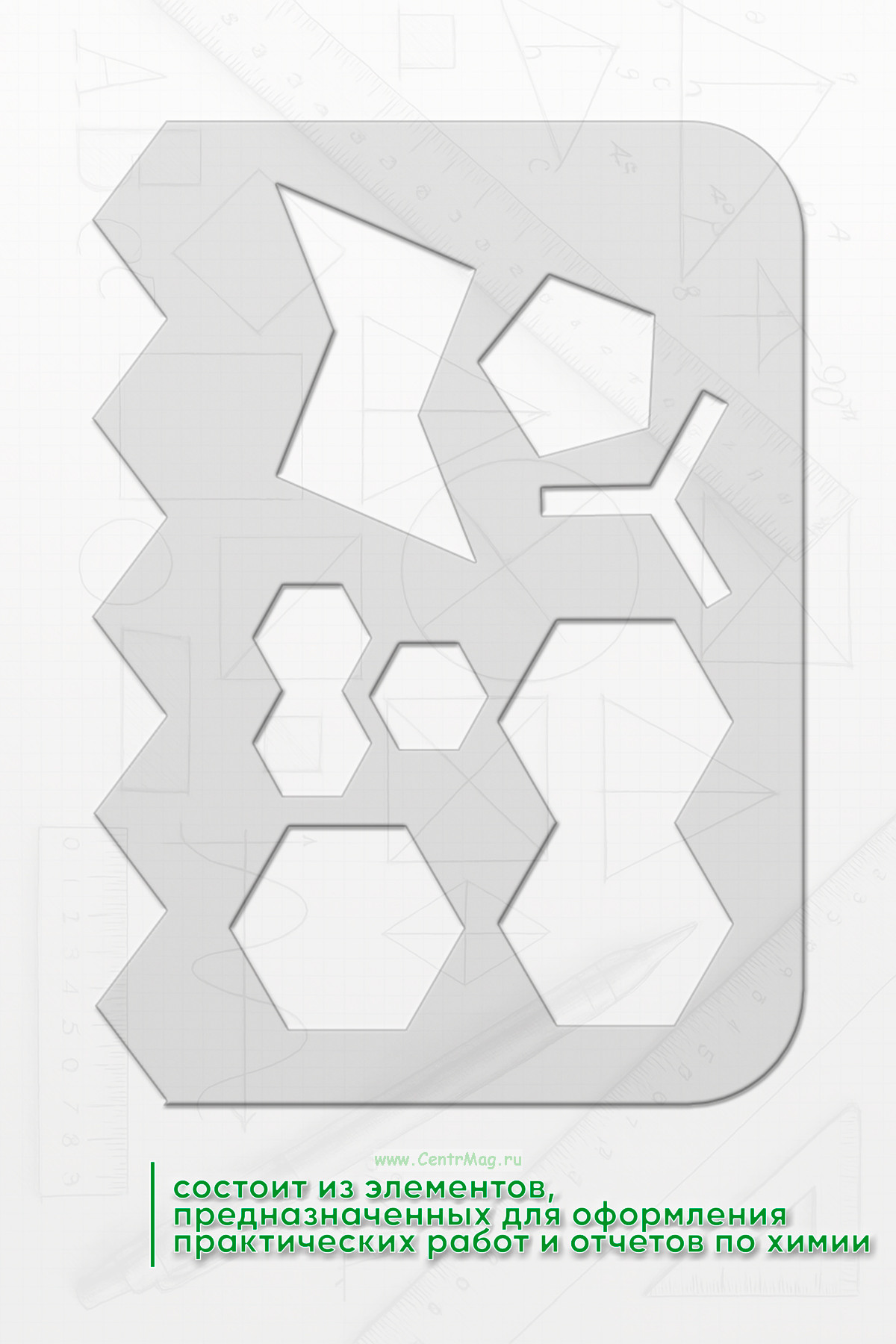 Трафарет состоит из необходимого количества элементов, предназначенных для оформления практических работ и отчетов по химии