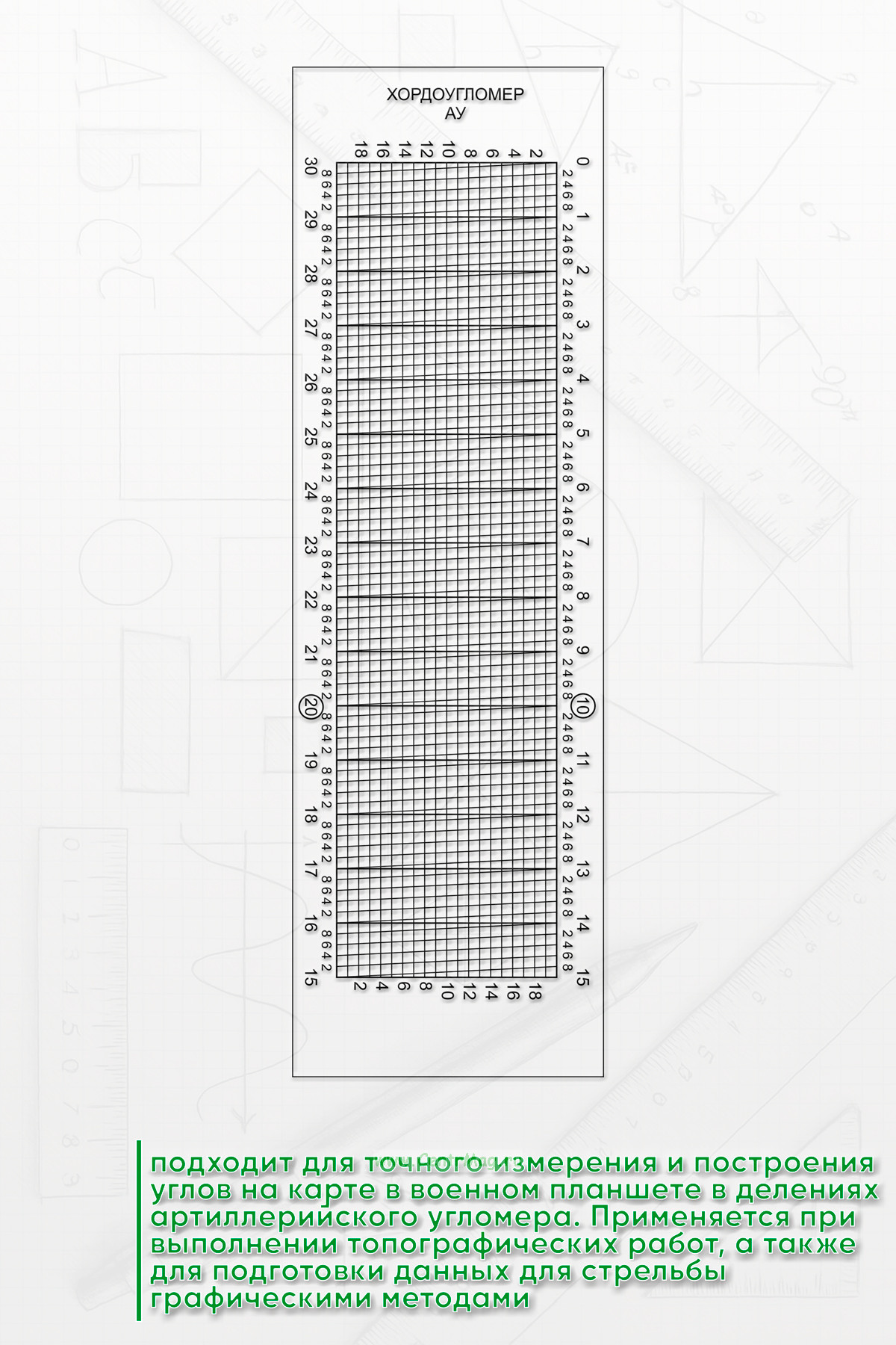 Хордоугломер — приспособление для точного измерения и построения углов на карте в военном планшете в делениях артиллерийского угломера. Применяется при выполнении топографических работ, а также для подготовки данных для стрельбы графическими методами