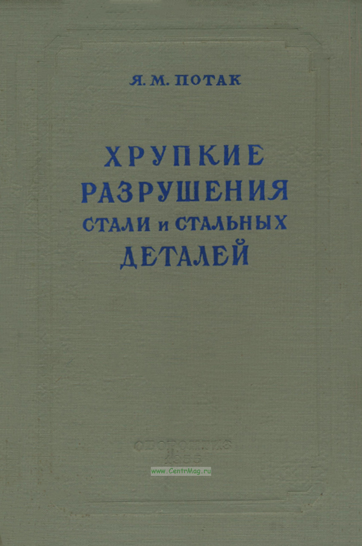 Целью настоящей работы является ознакомление широких кругов инженеров и техников, занятых в различных отраслях машиностроения, с малоизвестными до сих пор вопросами хрупких разрушений стали и стальных детален. В книге обобщены работы по выявлению основных закономерностей хрупкого разрушения и определению влияния отдельных факторов на «хрупкую прочность» стали. Автор поставил перед собой задачу возможно более полно разобрать и обобщить наиболее часто встречающиеся в практике случал хрупких разрушений и дать рекомендации по повышению надежности работы стальных деталей.