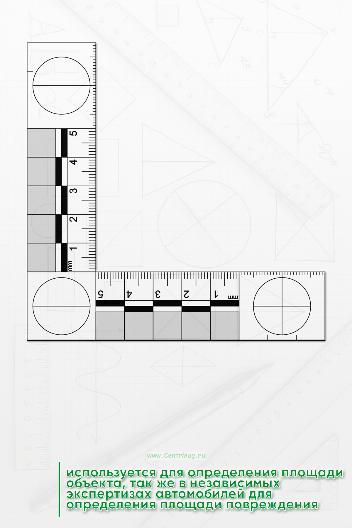 Линейка используется для определения площади объекта, так же в независимых экспертизах автомобилей для определения площади повреждения. Хорошие магнитные свойства позволяют ей удерживаться на металлических поверхностях в любом положении