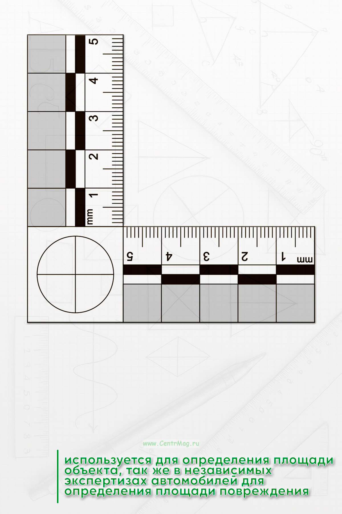 Линейка используется для определения площади объекта, так же в независимых экспертизах автомобилей для определения площади повреждения. Хорошие магнитные свойства позволяют ей удерживаться на металлических поверхностях в любом положении