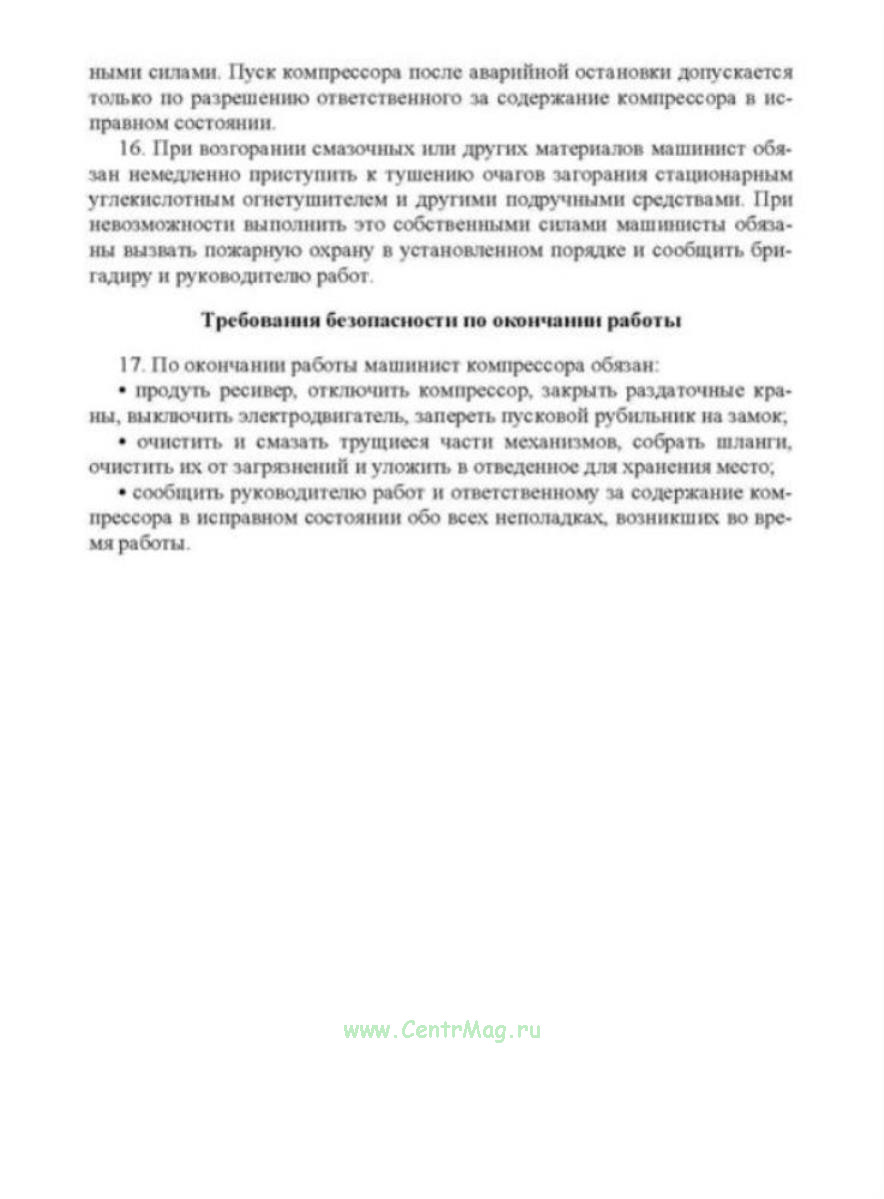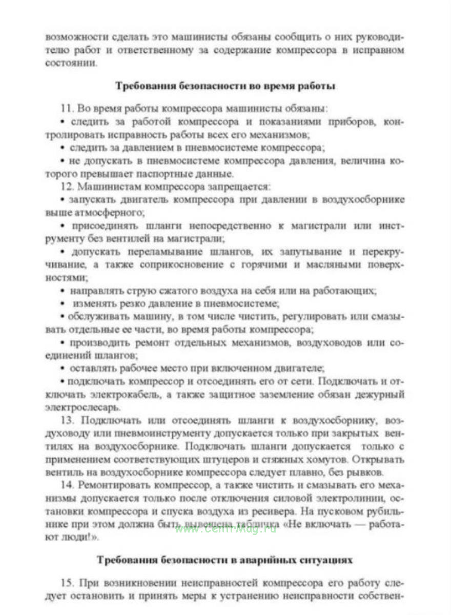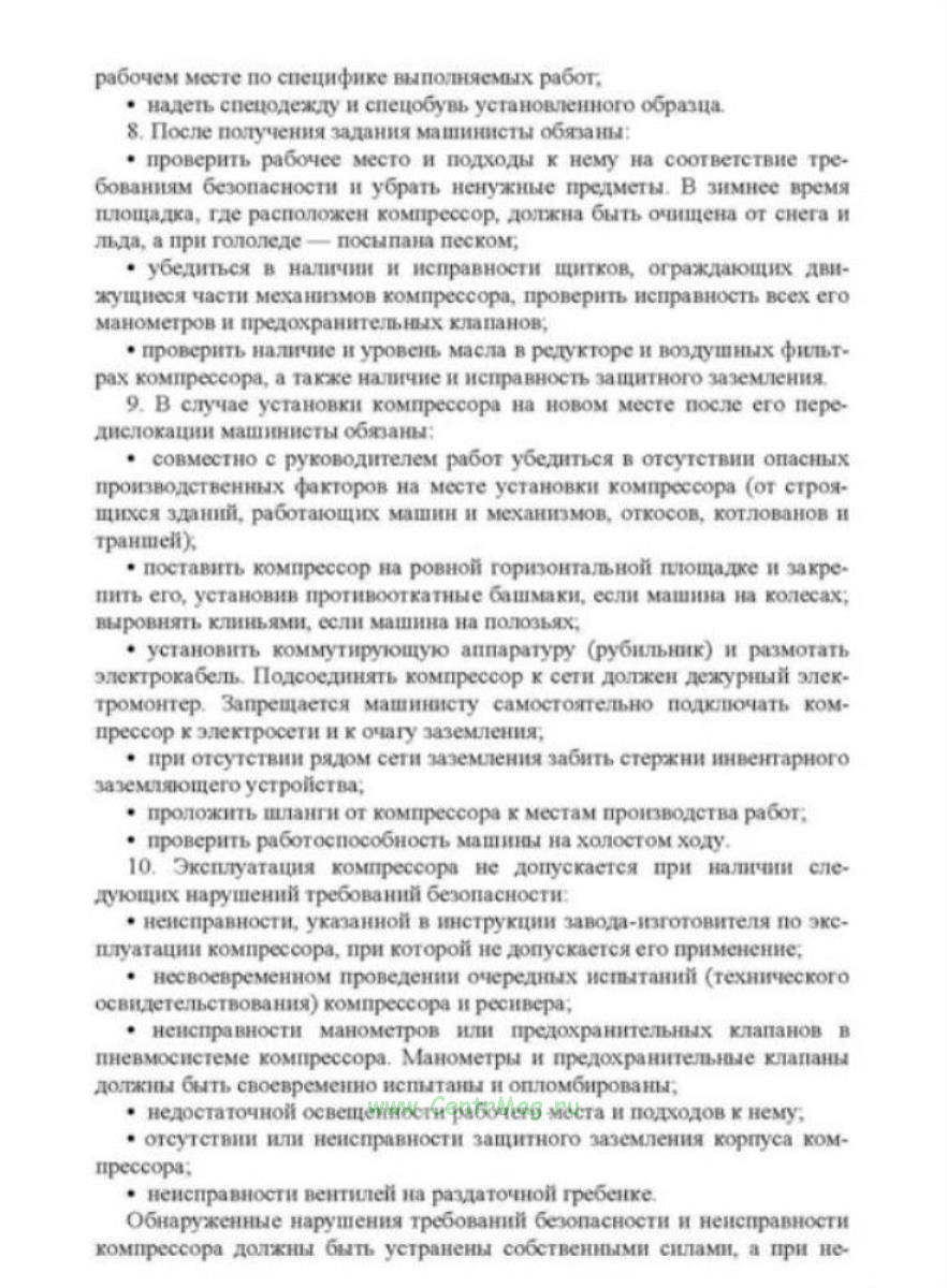 Инструкция по охране труда для машинистов компрессоров передвижных с электроприводом МИ-1-22-2009