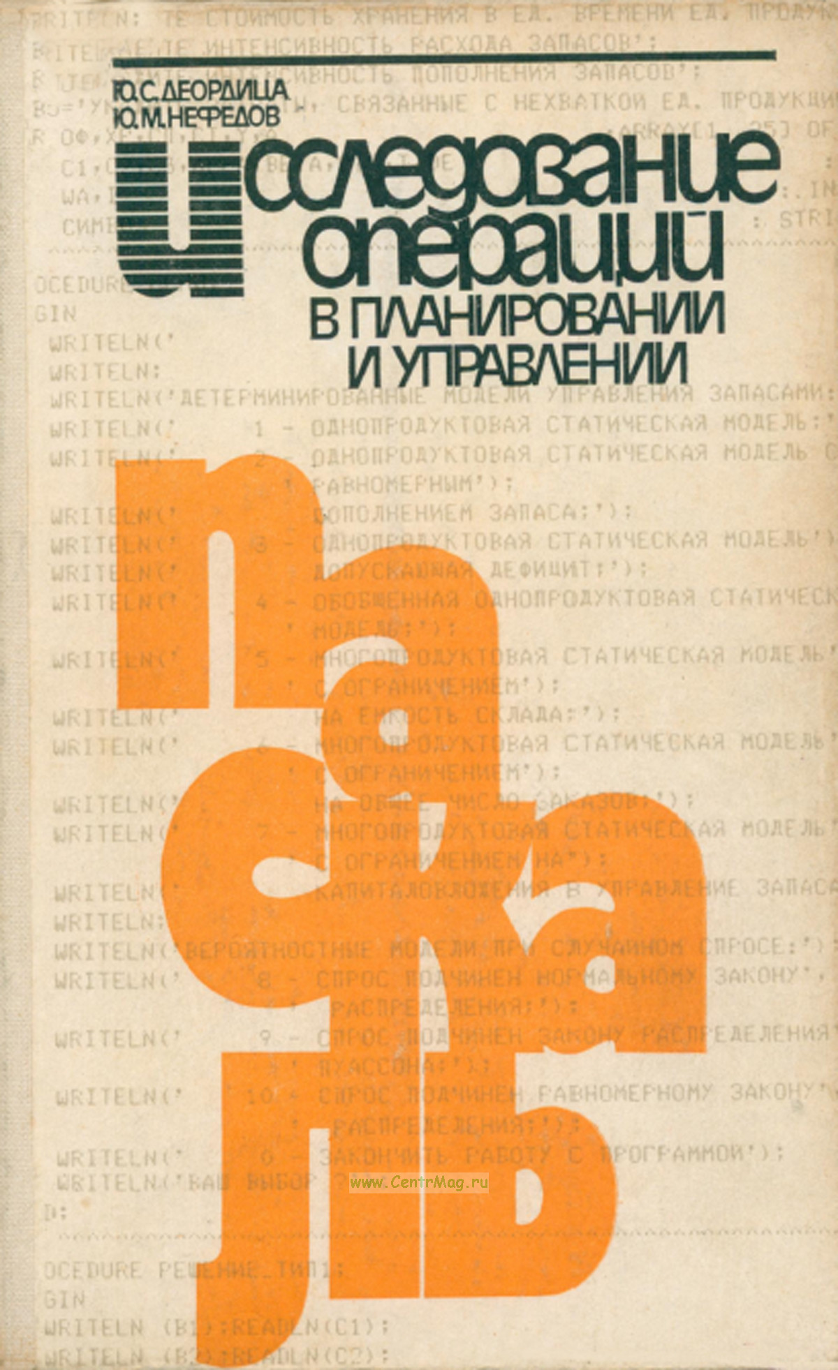 В книге изложены методы исследования операций, которые используются для решения оптимизационных задач в экономике. На базе математических моделей планирования и управления производством рассмотрены методы линейного, целочисленного, нелинейного и динамического программирования, сетевого планирования и управления, теории массового обслуживания и управления запасами. Алгоритмы методов сопровождаются их программной реализацией на языке Паскаль. Представленный комплекс программ может служить основой для создания программного обеспечения как учебного процесса, так и научных исследований.