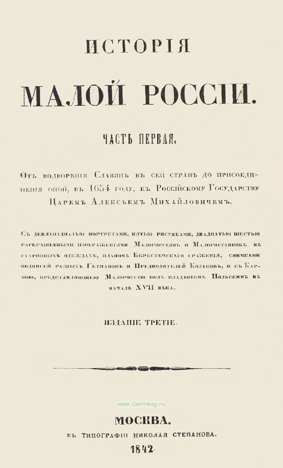 Часть первая - от водворения славян в сей стране до присоединения оной, в 1654 году, к Российскому Государству Царем Алексеем Михайловичем.