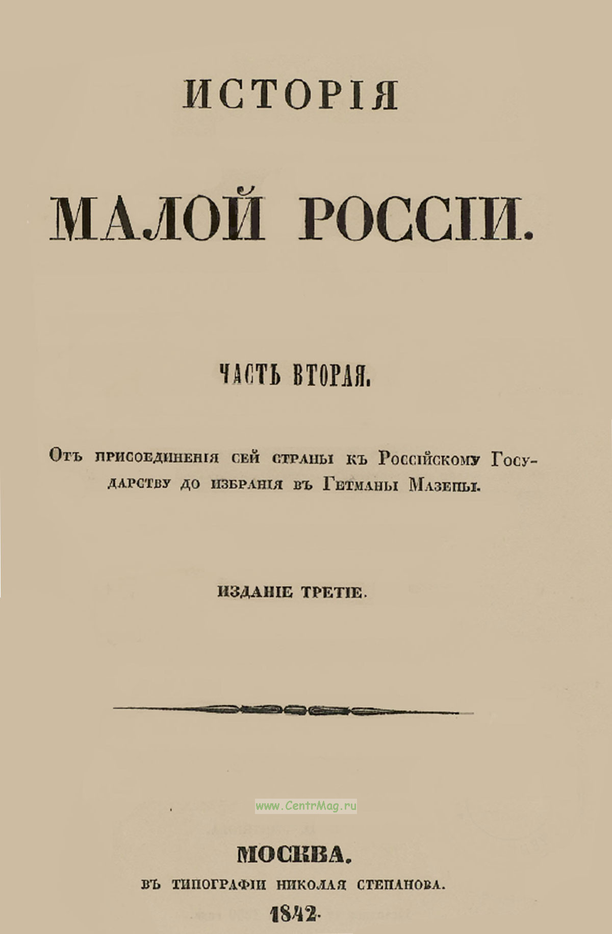 Часть вторая - от присоединения сей страны к Российскому Государству до избрания в Гетманы Мазепы.