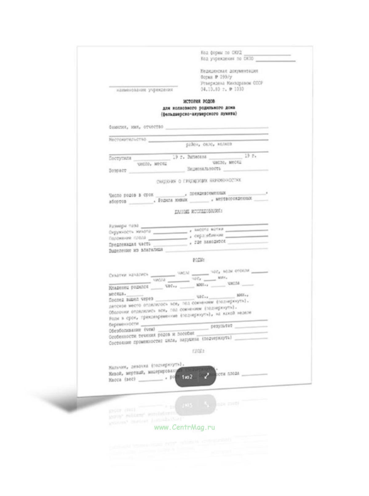 История родов для колхозного роддома, фельдшерско-акушерского пункта (Форма 099/у) продается только как чистый незаполненный бланк, без печатей и подписей соответствует 149-ФЗ от 27.07.2006