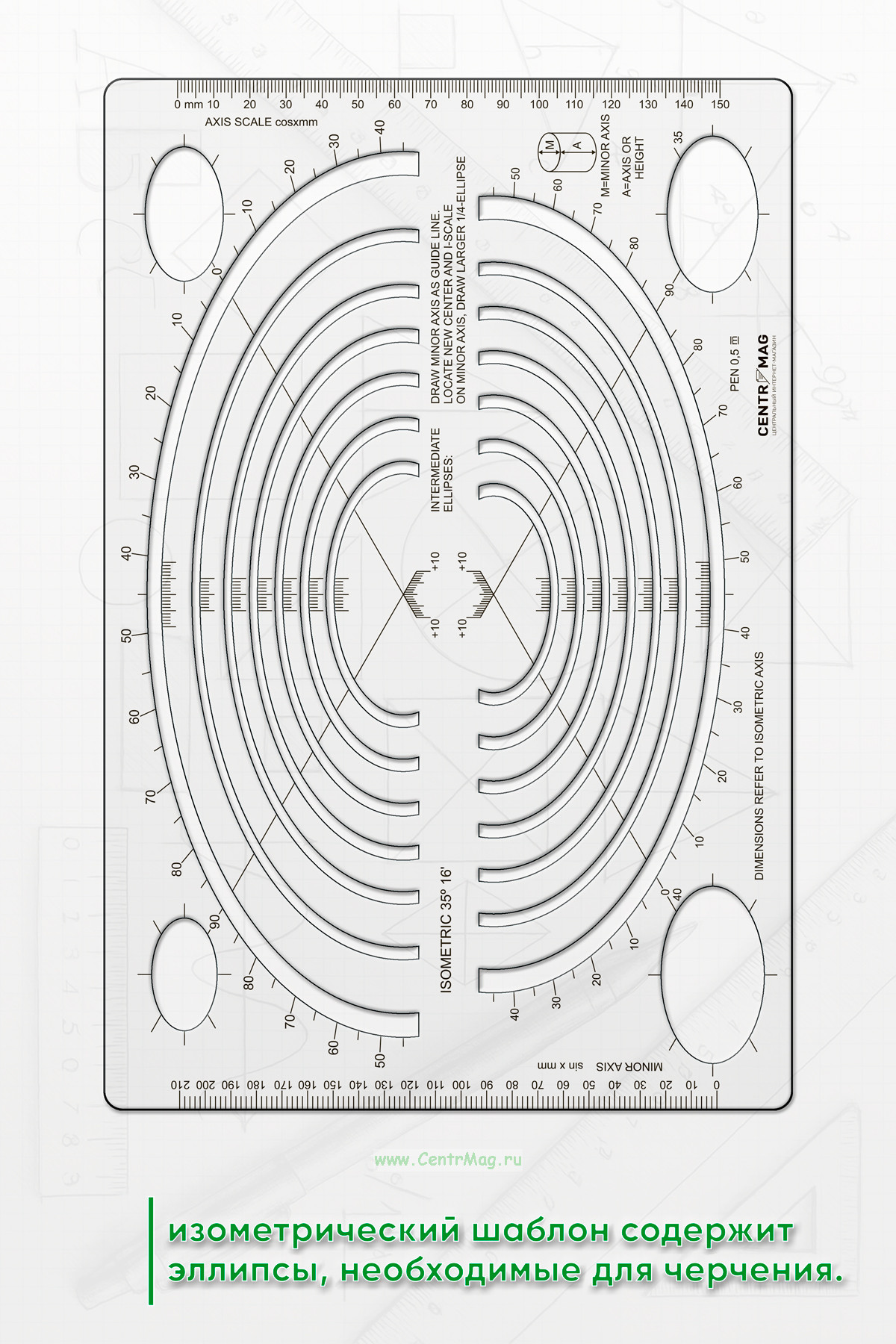 Изометрический шаблон содержит эллипсы, необходимые для черчения.